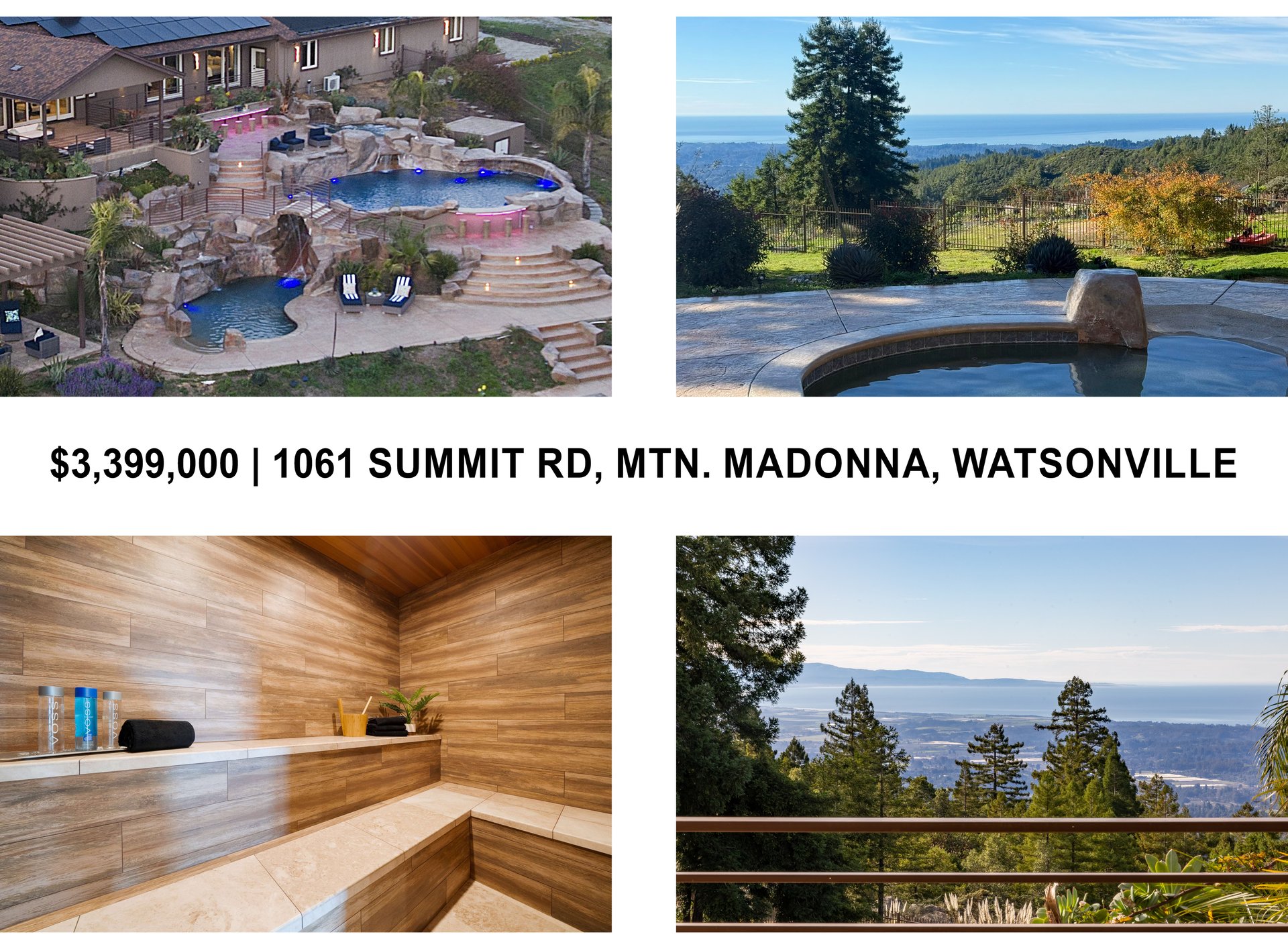 $3,399,000 | 1061 Summit Rd., Corralitos area, Watsonville, CA 95076 | 3 beds 3 baths 2500±sf + 2500±sf bonus space | 15.5±ac
