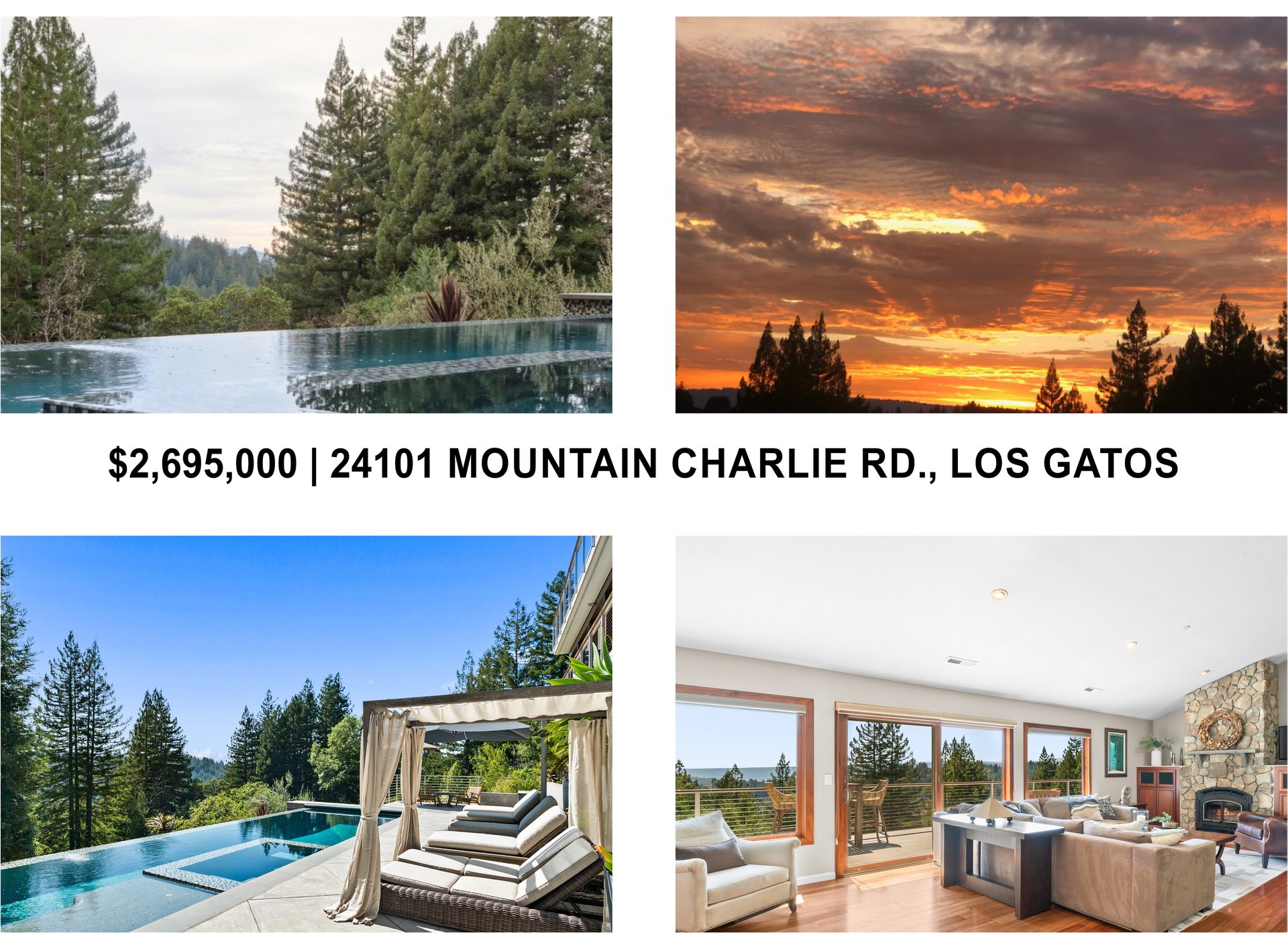 $2,695,000 | 24101 Mountain Charlie Road, Los Gatos CA 95033 | 4 beds 3.5 baths + .5 poolside! 3623±sf | 15.5±ac