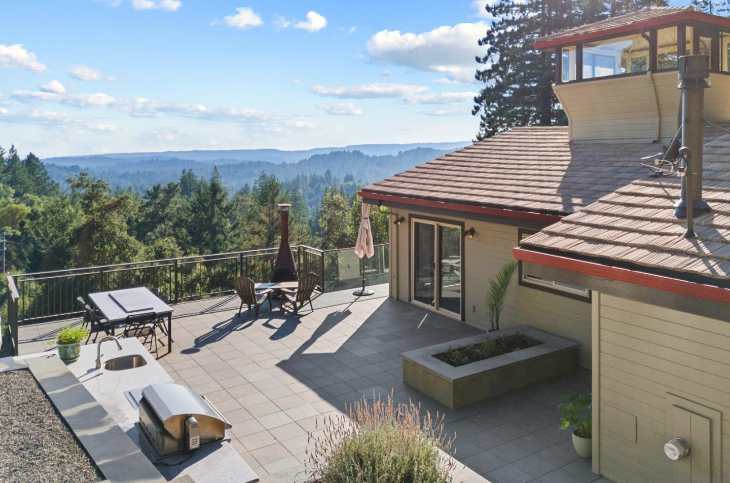 Sweeping views and central to everything! See the ocean on the horizon. Cruise the redwood forest to grocery shopping, schools, hiking/biking trails, and California beaches. Frontier Fiber internet (4K movies, gaming, work from home on several devices). 2 primary suites! This well-maintained, move-in ready home offers inviting indoor outdoor living and great upgrades. Nearby are top Los Gatos school's, LG High just 14.3 mi. away, 3.7 mi. to Summit Grocery,15 mi. of to the beach! 13 mi. to Downtown Los Gatos, and w/in 5 mi. to award-winning LG Mtn. Wineries. Great open floor plan where the Living rm opens to Kitchen with major views! Kitchen w/Samsung Chef Collection range w/electric oven and gas stove, stainless steel appliances. Primary bdrm w/remote control gas stove, skylight that opens, updated bath! Lower-level Family rm wired for theater, stay cozy with the wood burning stove. Outdoor gym space with views! Full outdoor kitchen w/gas grill & rotisserie, Wok burner! Do yoga or enjoy coffee in the Crow's Nest! Solar reflective metal roof certified for rainwater collection. Water w/addtl treatment (softener, filter, UV sanitizer, reverse osmosis). Great neighborhood to enjoy locals, kids, or privacy. Large 3 car gar., space for RV and visitors!