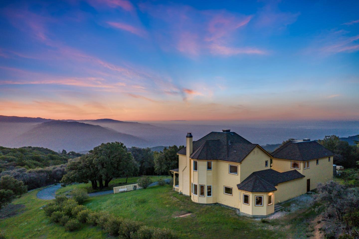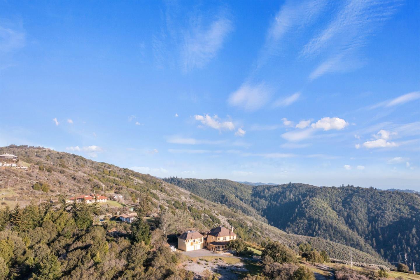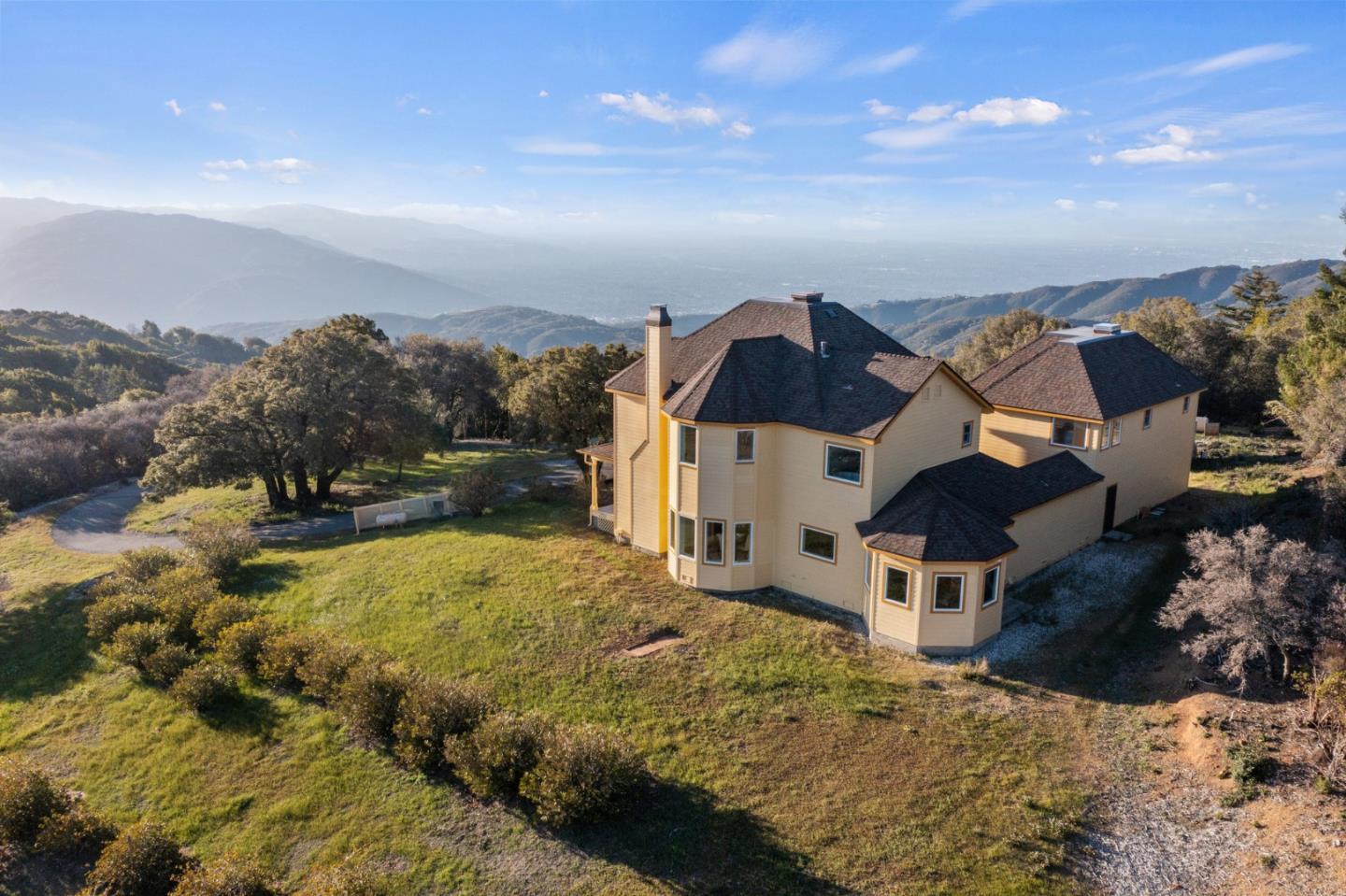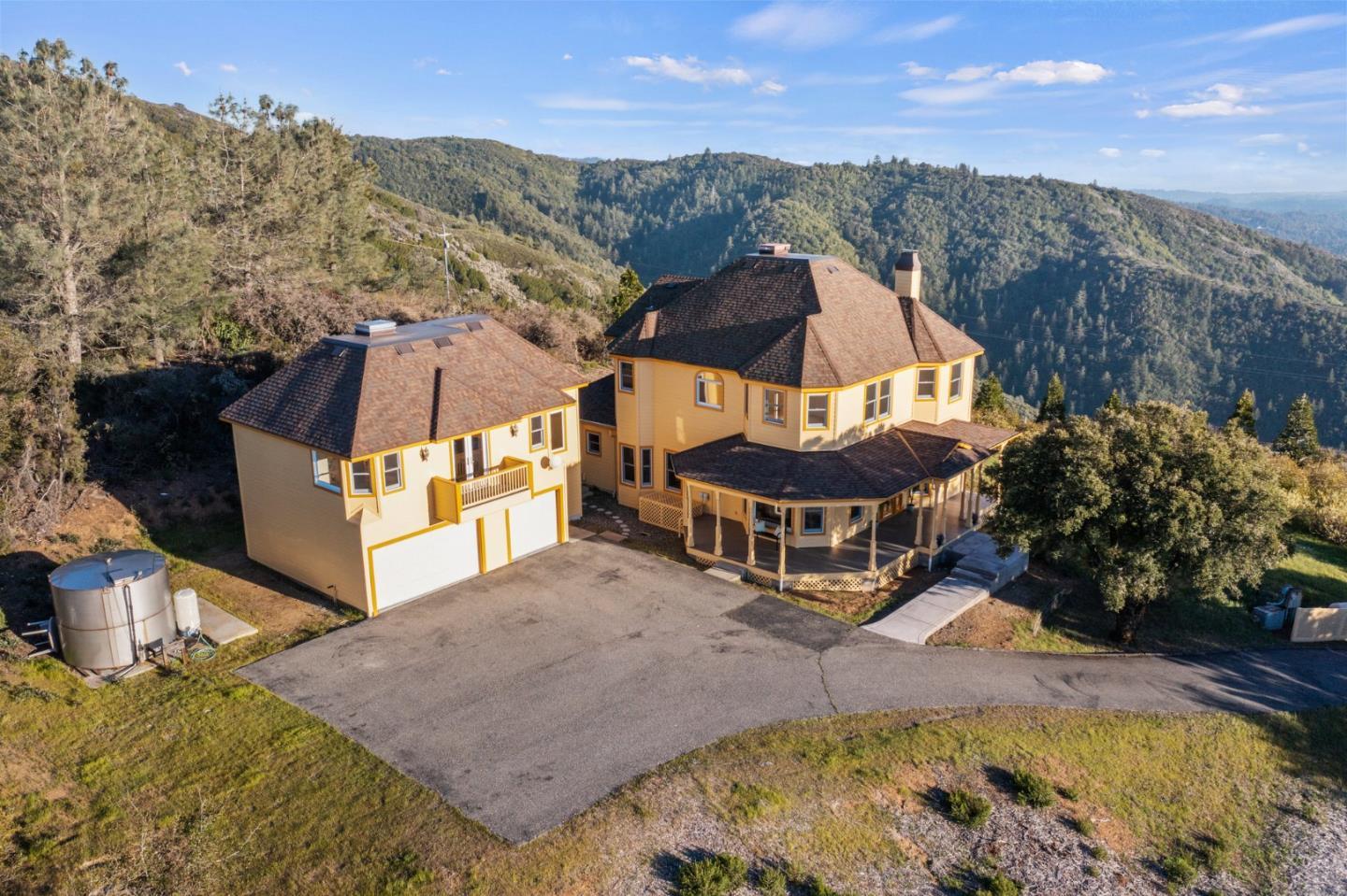 Section 1 work completed! 270-degree views over Monterey Bay to SF and over Silicon Valley's city lights. Main hm 4/3, plus, studio apt. with separate entrance. Beautiful drive up rolling hills with the sound of the waterfall springs leads you through gated drive to a stately Victorian-style home, and massive views. Lower west portion of property is flat usable land and wired for electricity. Perfect to expand, potentially add solar, ADU, or other. Open floor plan, Gourmet Kitchen, Formal Dining, Living Rm, plus 2 adjoined Family Rms, all with views! Soak in your Primary Suite's oversized tub while gazing upon the sunset. A blanket of stars covers you in the evening and by day the sun fills the property and home. Potential front row views to meteor showers! Parking for 6+ and 3 car garage. Enjoy overnight guests, perfect home to entertain. Well-kept home, too many updates to list. Top schools! Coming from Los Gatos its the just 1st exit off SR17. Great homesteading potential.