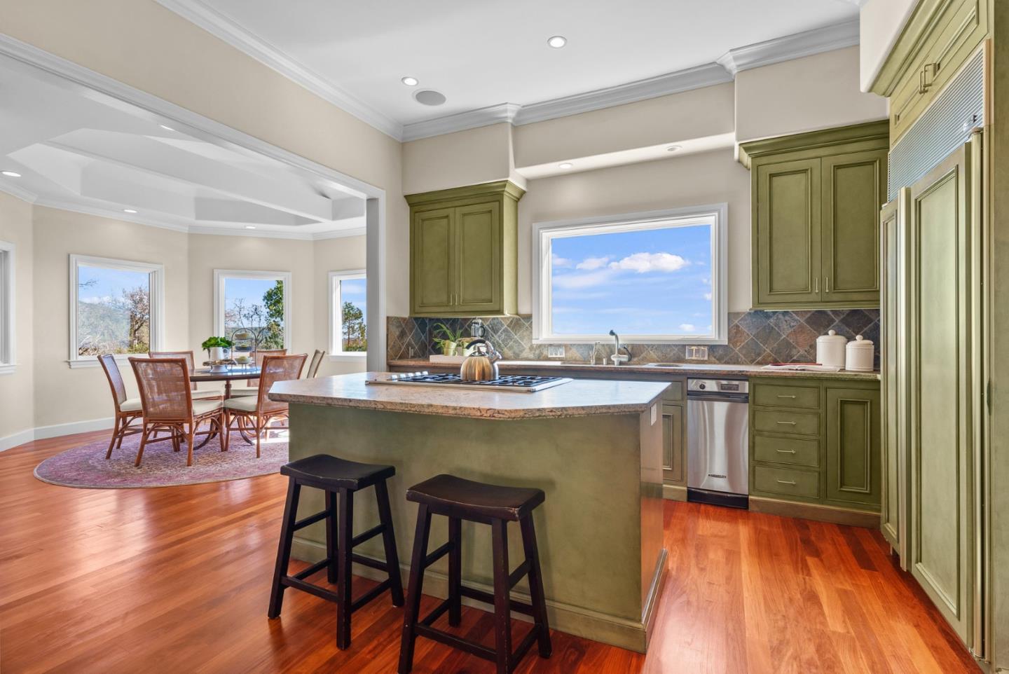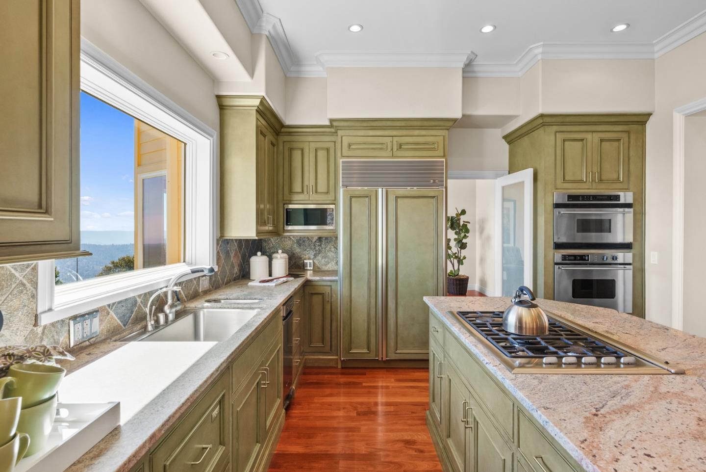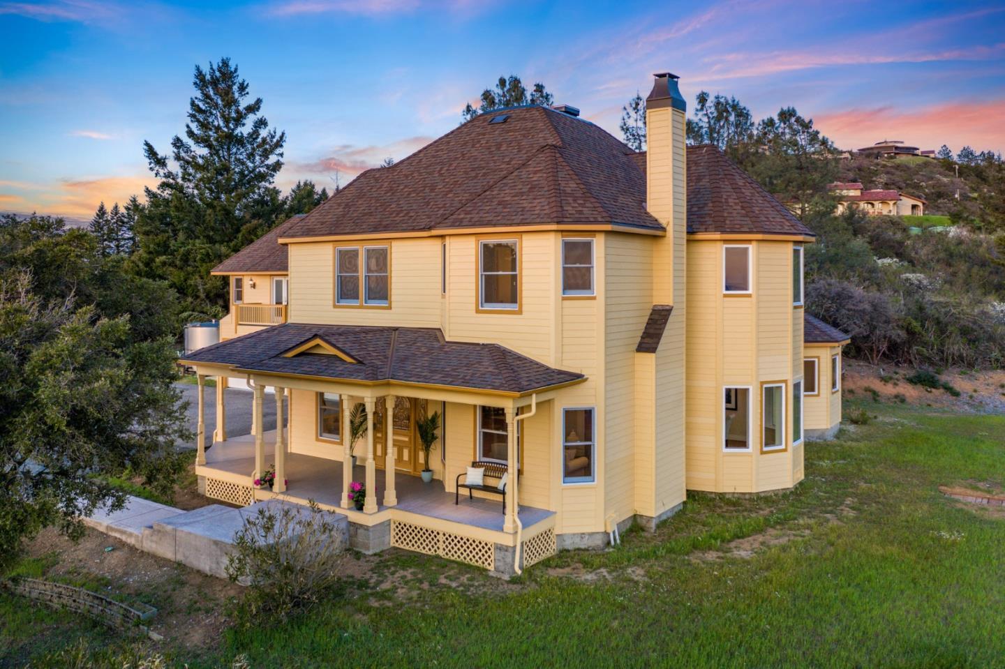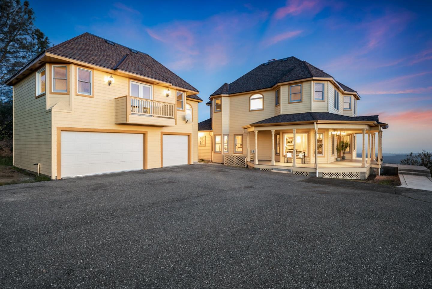Section 1 work completed! 270-degree views over Monterey Bay to SF and over Silicon Valley's city lights. Main hm 4/3, plus, studio apt. with separate entrance. Beautiful drive up rolling hills with the sound of the waterfall springs leads you through gated drive to a stately Victorian-style home, and massive views. Lower west portion of property is flat usable land and wired for electricity. Perfect to expand, potentially add solar, ADU, or other. Open floor plan, Gourmet Kitchen, Formal Dining, Living Rm, plus 2 adjoined Family Rms, all with views! Soak in your Primary Suite's oversized tub while gazing upon the sunset. A blanket of stars covers you in the evening and by day the sun fills the property and home. Potential front row views to meteor showers! Parking for 6+ and 3 car garage. Enjoy overnight guests, perfect home to entertain. Well-kept home, too many updates to list. Top schools! Coming from Los Gatos its the just 1st exit off SR17. Great homesteading potential.