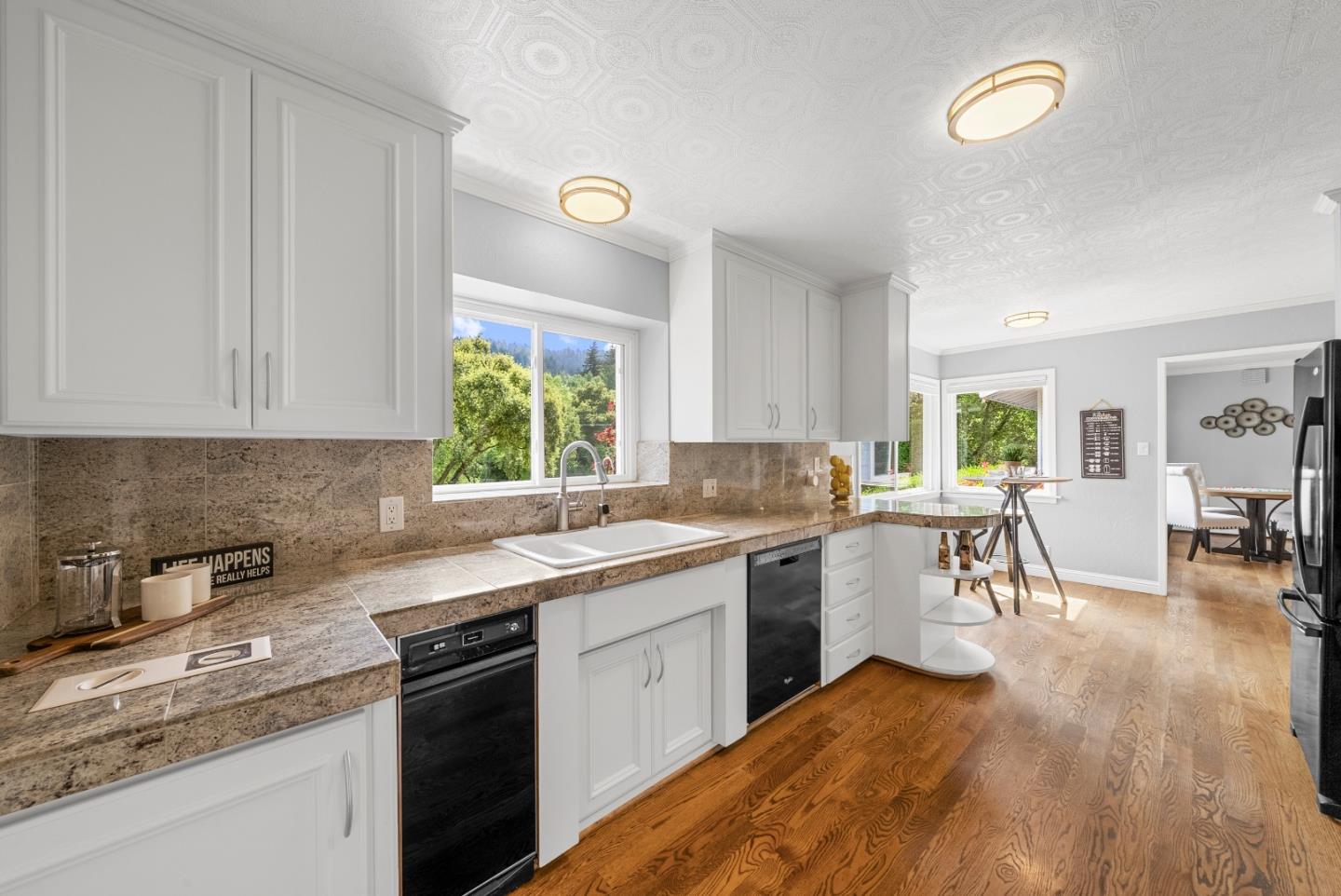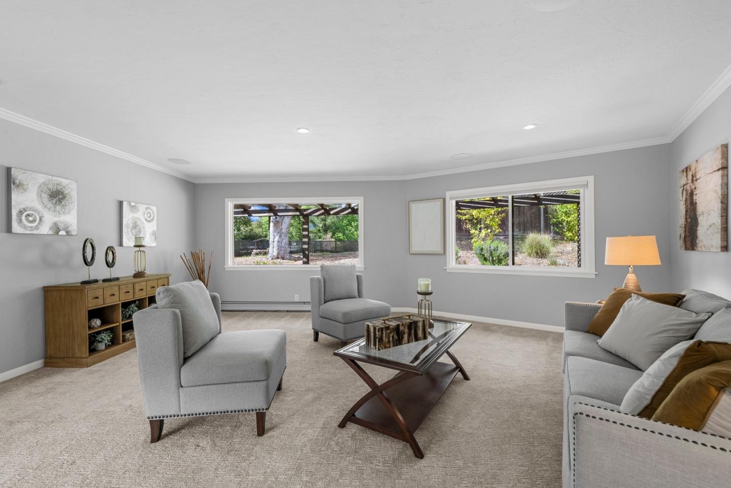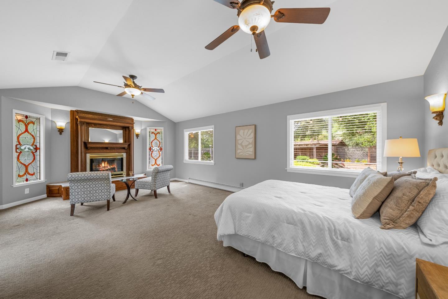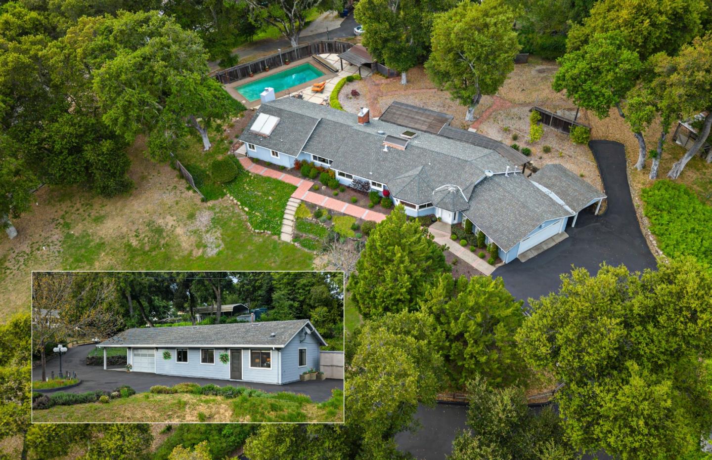 Single level 3bd 2ba, 2426sf+- Main home PLUS 1bd 1ba, 840sf+- Guest Home previously rented $3000+. Easy exit on Bear Creek Rd. and cruise the beautiful Old Santa Cruz Highway backroad straight to your front door! Just 4 short miles into Downtown Los Gatos, a rare opportunity to own over 2ac. of usable land. Both garage's set for Level 2 EV charging. Summer-ready backyard features a pool, pergola patio, propane plumbed in ready for your BBQ and firepits, grow your dream garden! Inside, natural light and lovely views in all living spaces, dine with stunning views. Kitchen and breakfast nook look out to vibrant green mountains and the pond! Separate family, living, and formal dining rooms are excellent to host gatherings. Unwind in your Primary Suite Retreat by the fireplace, or, rejuvenate in your spa bath with sauna, shower for two, so much natural light, and sliding glass doors to an idyllic private patio. Mn hm: 2-car gar., 1 carport. Gst Hm: 1-car gar., 1 carport, Other features: potential rental income or multi-gen. living, zoned heat, pre-wired for video/audio, laundry rm, deer fence. Los Gatos schools. Multiple routes to and from the home, take backroads to the beach or around town, easy access to hiking and biking!
