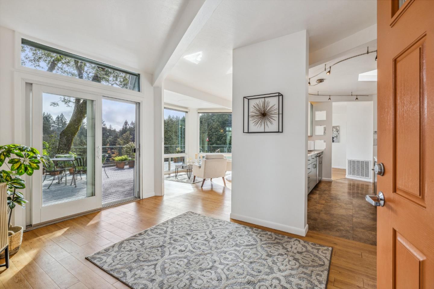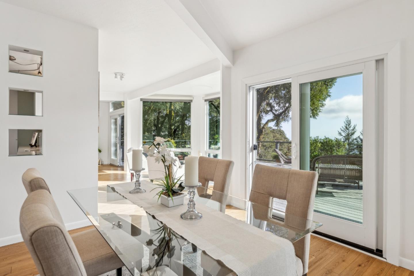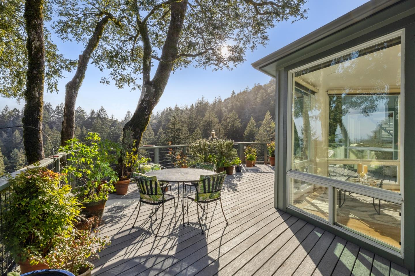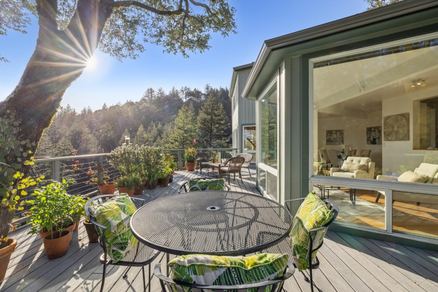 Tucked away in the desirable Oak Ridge Road community, this elegant 3bd, 3ba home offers stunning, uninterrupted views, an abundance of natural light, and lovely outdoor living spaces. Even the kitchen boasts stunning views, and, opens to the family and dining rooms. You will wow guests with the stunning scenery and beautiful living spaces, or thoroughly enjoy your solo time surrounded by nature. Whether you're drawn to a welcoming, social community or value privacy, this neighborhood offers the best of both. The main level features two bdrms, one with an en-suite bath, separate family, living, and dining rooms, and pantry storage for the kitchen. Ascend the spiral staircase to a primary suite and jaw dropping views! A true sanctuary. Outdoors enjoy multiple balconies and garden-ready spaces that provide you both sun and shade, creating perfect places for morning coffee, BBQ, outdoor dining, or tending to your plants and greenery. Several charming spots are perfect for a bistro or lounge seating, extending your life into nature. Other features: 2+ car garage, ample parking with room for RV or oversized vehicles, large storage room, solar power. Top Los Gatos schools! This is an ideal home for those who want connection without compromising peace and quiet.