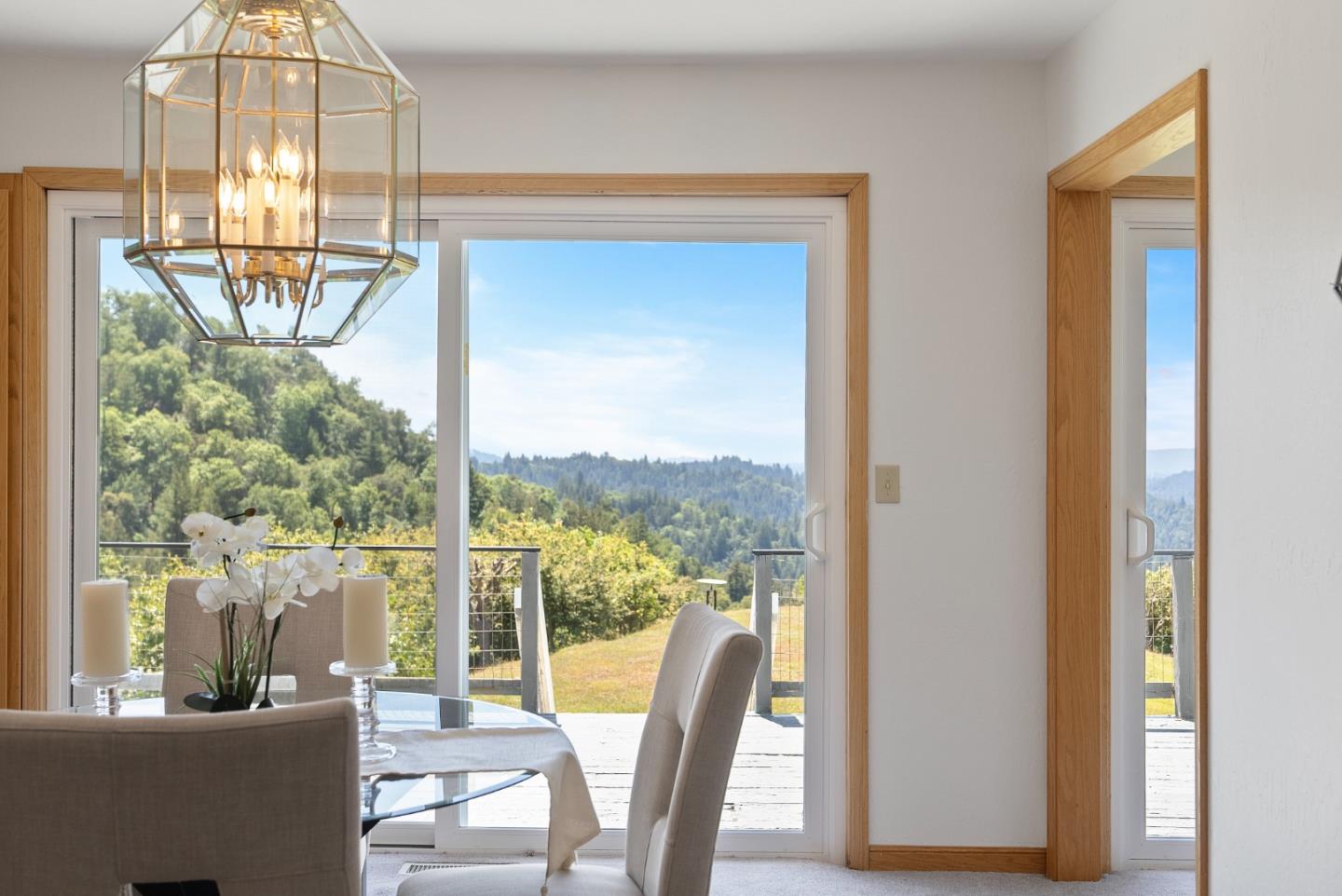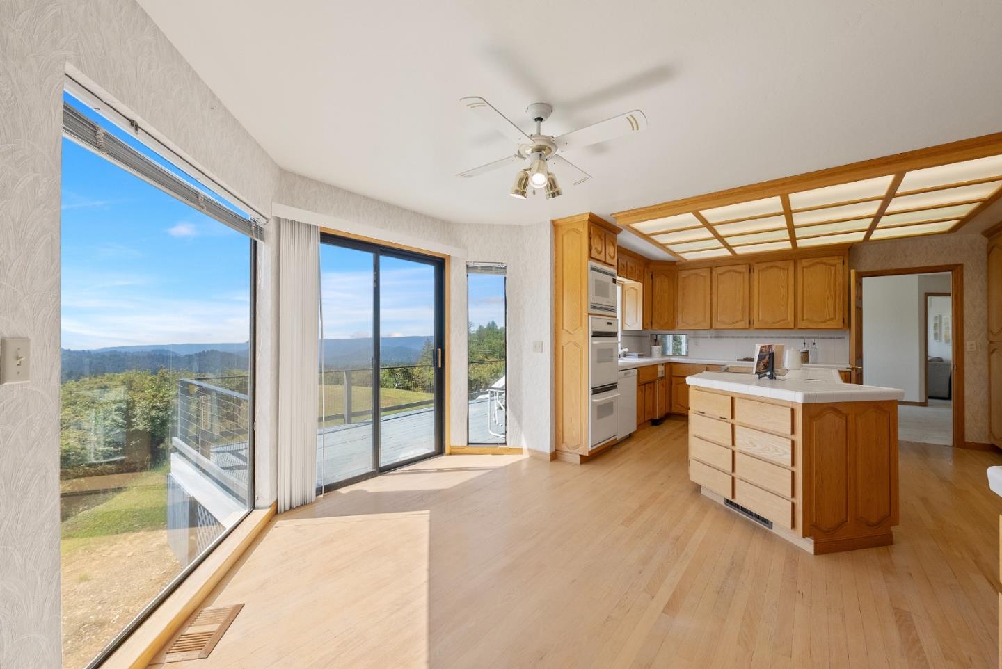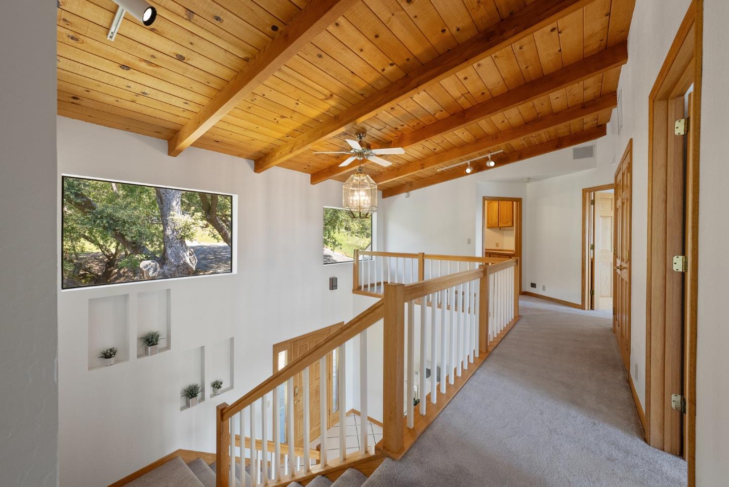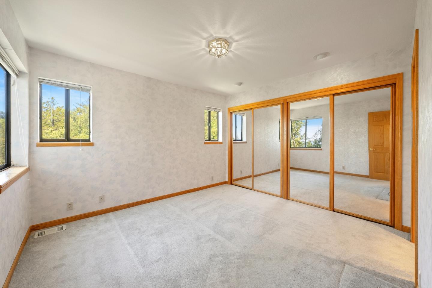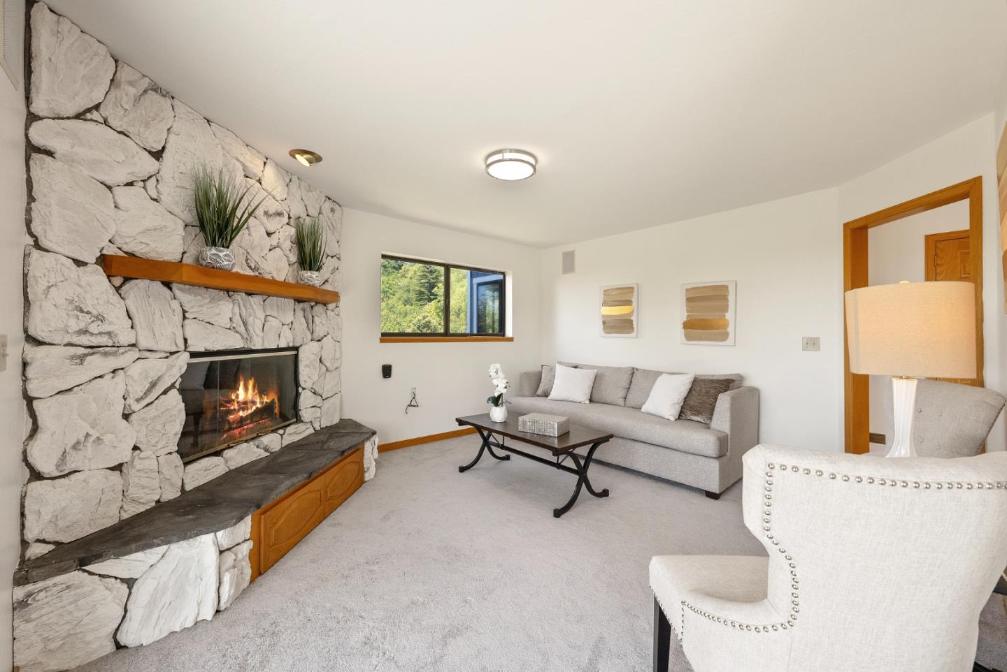 Spectacular views out to Monterey Bay! Usable land and great location up Bear Creek Rd. Serene views all the way to the bay that you will enjoy from the beautiful, flat, backyard knoll and throughout the home. Spacious 5-bdrm, 5-ba. home offers rare flexibility with 4 en-suite bdrms, incl. one on the main level great for guests or multigen. living. Expansive Primary Retreat features breathtaking views, spa-bath with jetted tub, cozy fireplace, and sitting area. Main level with separate dining, living, and family rms, all with unmatched vistas! Light, bright kitchen with ample storage, island, breakfast nook with views, and family/breakfast rm also with cozy fireplace. Formal dining room opens to the back deck and views, a perfect setting to dazzle guests. Adjoining living rm also with cozy fireplace and sliding glass doors to the deck. Upstairs large laundry rm, plus unfinished basement with walk-out access great for workshop, home gym, or custom expansion. New roof (2025) by Los Gatos Roofing, fresh exterior paint, newly re-paved driveway, usable land, 2-car gar. and space for oversized vehicle, majestic oaks. Top Los Gatos schools, and, close to downtown Los Gatos, Boulder Creek and Santa Cruz coast. Rare combination of privacy, views, and convenient access. Don't miss out!