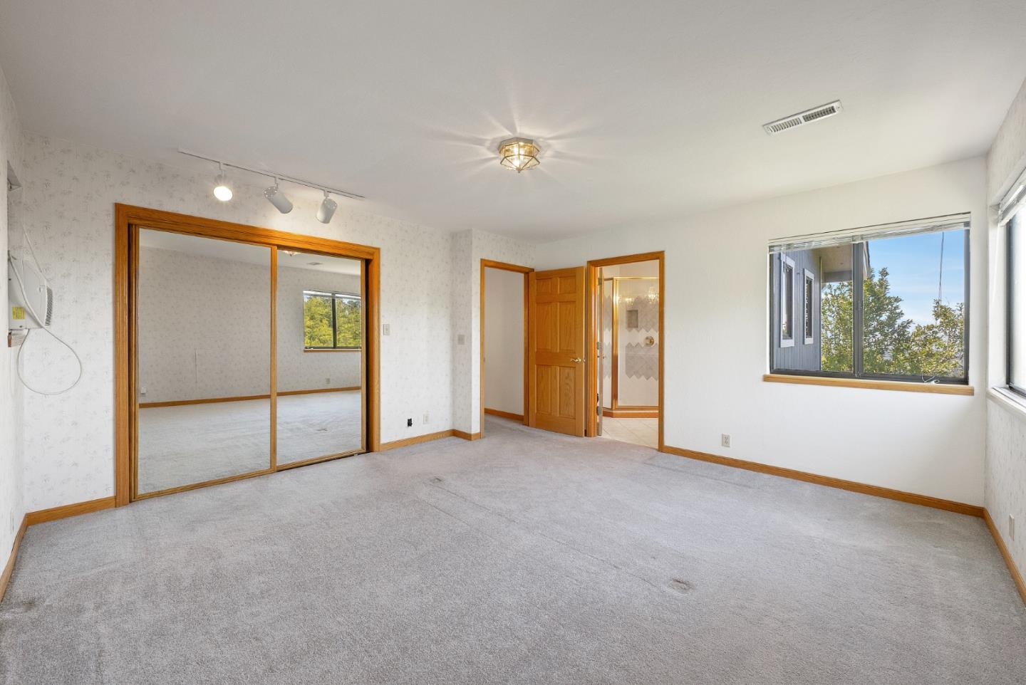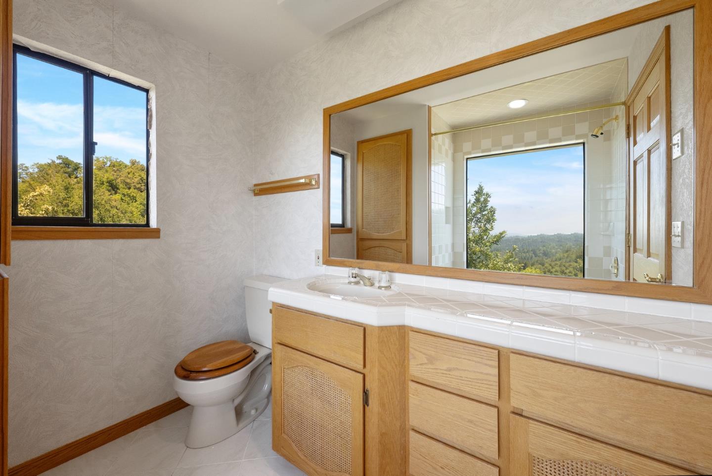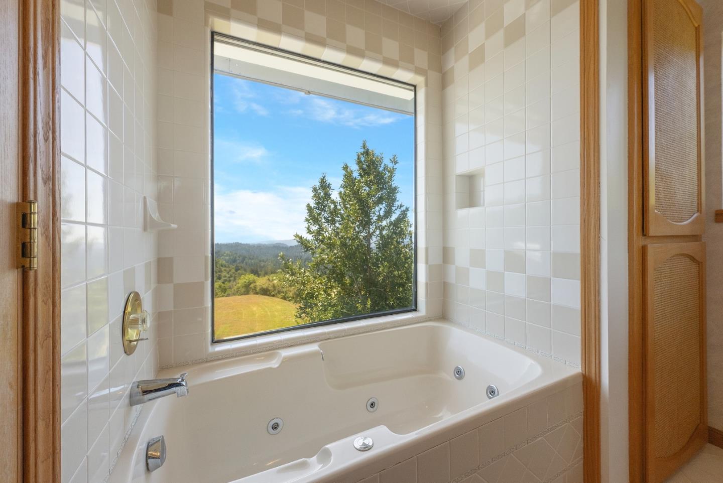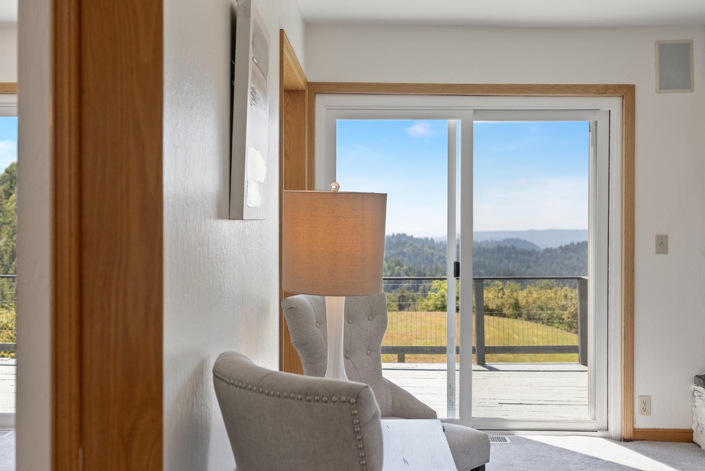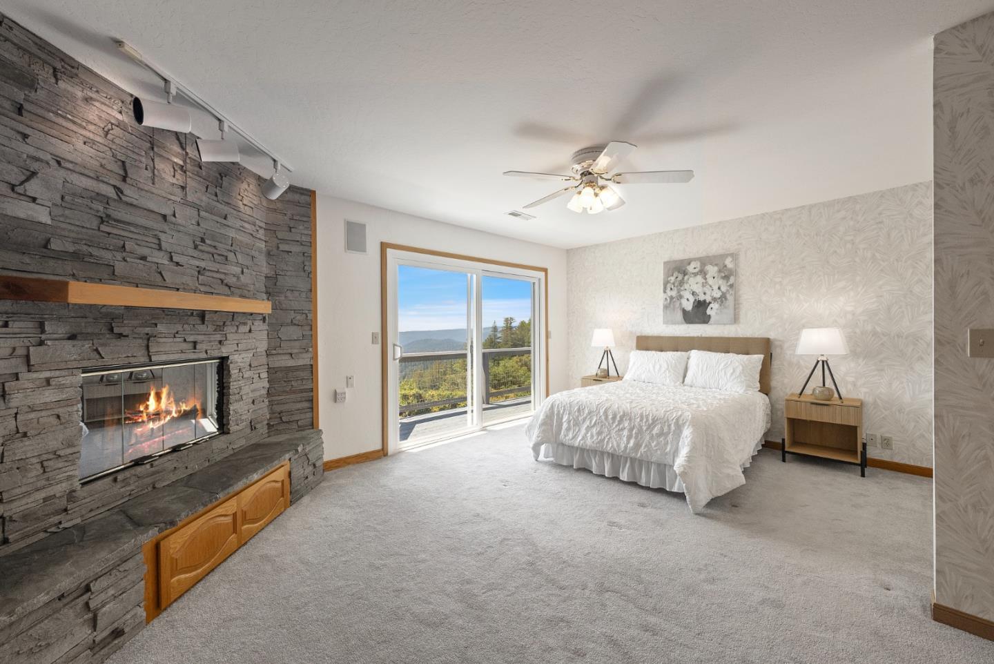 Spectacular views out to Monterey Bay! Usable land and great location up Bear Creek Rd. Serene views all the way to the bay that you will enjoy from the beautiful, flat, backyard knoll and throughout the home. Spacious 5-bdrm, 5-ba. home offers rare flexibility with 4 en-suite bdrms, incl. one on the main level great for guests or multigen. living. Expansive Primary Retreat features breathtaking views, spa-bath with jetted tub, cozy fireplace, and sitting area. Main level with separate dining, living, and family rms, all with unmatched vistas! Light, bright kitchen with ample storage, island, breakfast nook with views, and family/breakfast rm also with cozy fireplace. Formal dining room opens to the back deck and views, a perfect setting to dazzle guests. Adjoining living rm also with cozy fireplace and sliding glass doors to the deck. Upstairs large laundry rm, plus unfinished basement with walk-out access great for workshop, home gym, or custom expansion. New roof (2025) by Los Gatos Roofing, fresh exterior paint, newly re-paved driveway, usable land, 2-car gar. and space for oversized vehicle, majestic oaks. Top Los Gatos schools, and, close to downtown Los Gatos, Boulder Creek and Santa Cruz coast. Rare combination of privacy, views, and convenient access. Don't miss out!