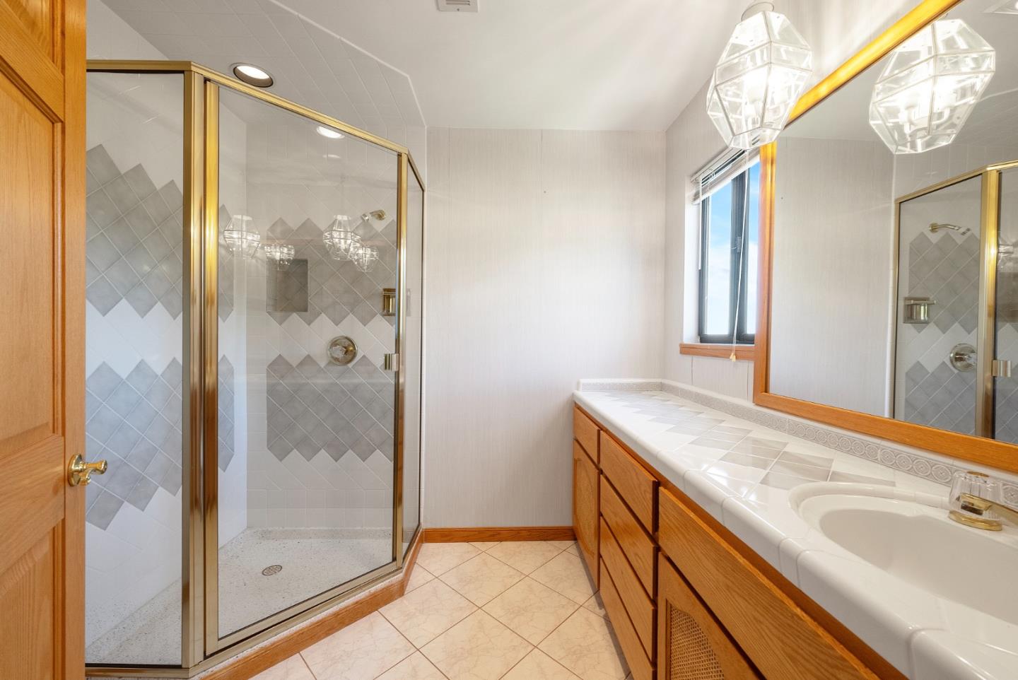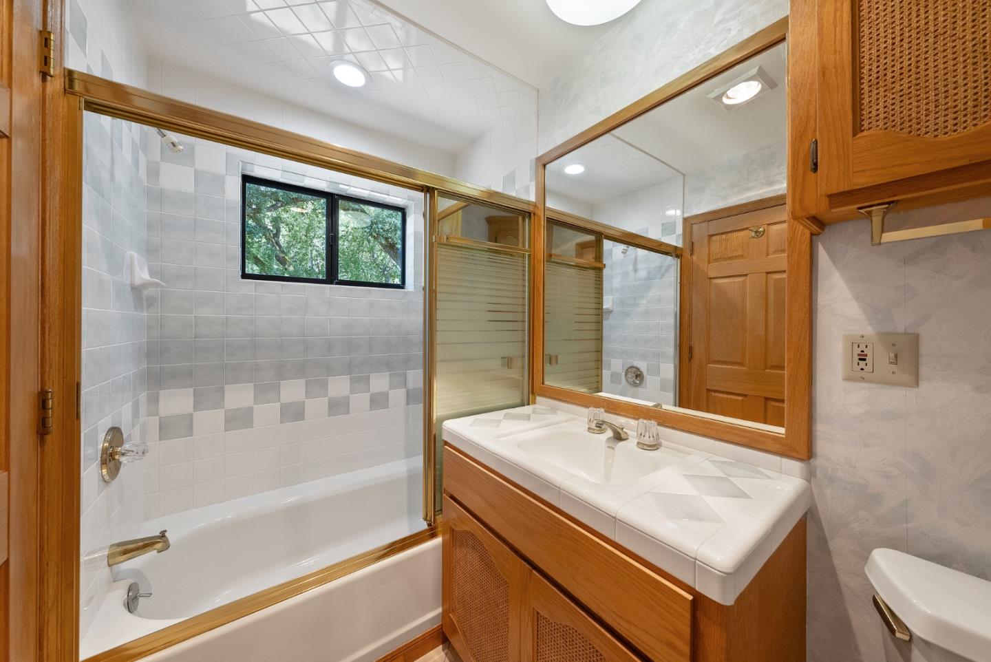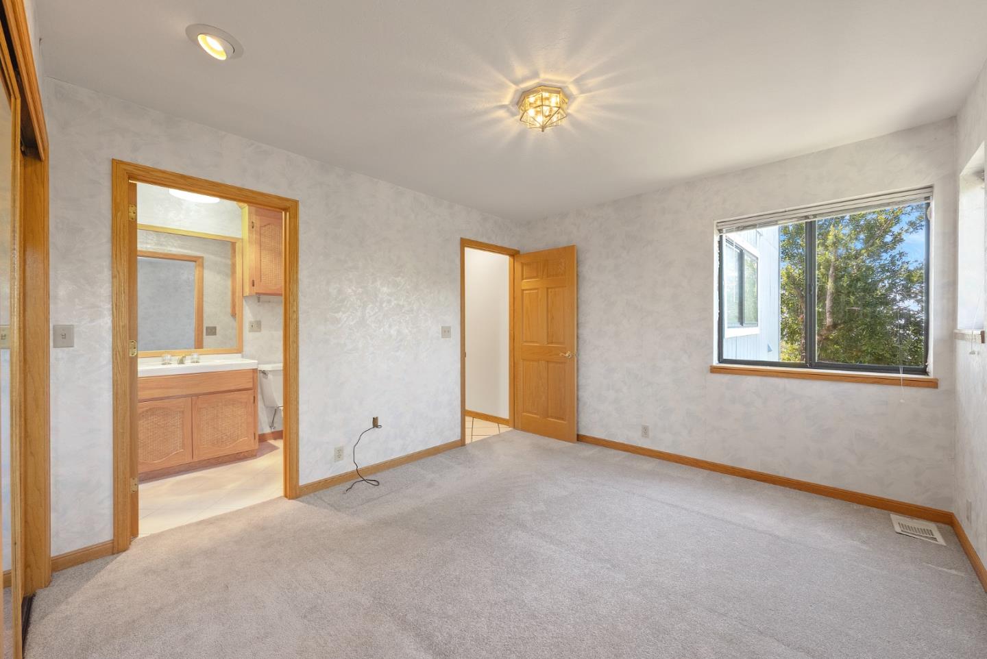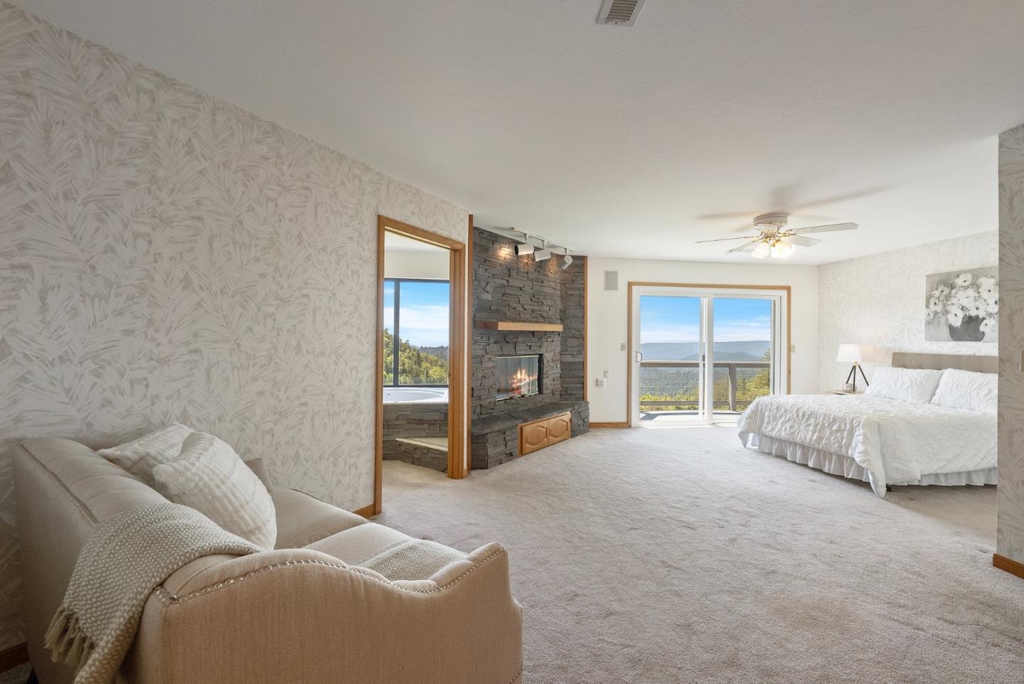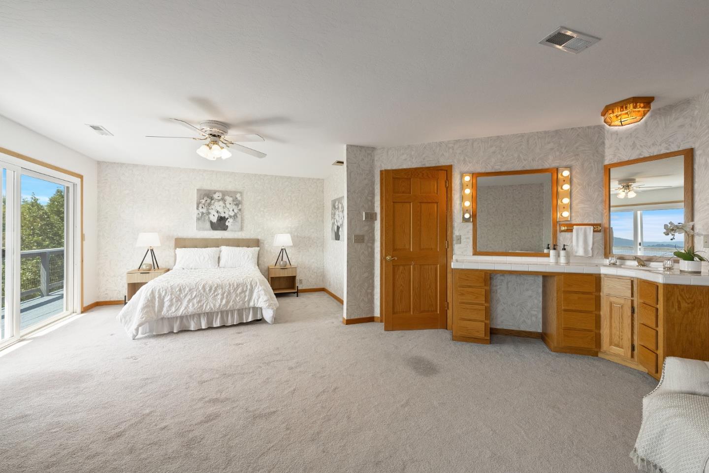 Spectacular views out to Monterey Bay! Usable land and great location up Bear Creek Rd. Serene views all the way to the bay that you will enjoy from the beautiful, flat, backyard knoll and throughout the home. Spacious 5-bdrm, 5-ba. home offers rare flexibility with 4 en-suite bdrms, incl. one on the main level great for guests or multigen. living. Expansive Primary Retreat features breathtaking views, spa-bath with jetted tub, cozy fireplace, and sitting area. Main level with separate dining, living, and family rms, all with unmatched vistas! Light, bright kitchen with ample storage, island, breakfast nook with views, and family/breakfast rm also with cozy fireplace. Formal dining room opens to the back deck and views, a perfect setting to dazzle guests. Adjoining living rm also with cozy fireplace and sliding glass doors to the deck. Upstairs large laundry rm, plus unfinished basement with walk-out access great for workshop, home gym, or custom expansion. New roof (2025) by Los Gatos Roofing, fresh exterior paint, newly re-paved driveway, usable land, 2-car gar. and space for oversized vehicle, majestic oaks. Top Los Gatos schools, and, close to downtown Los Gatos, Boulder Creek and Santa Cruz coast. Rare combination of privacy, views, and convenient access. Don't miss out!
