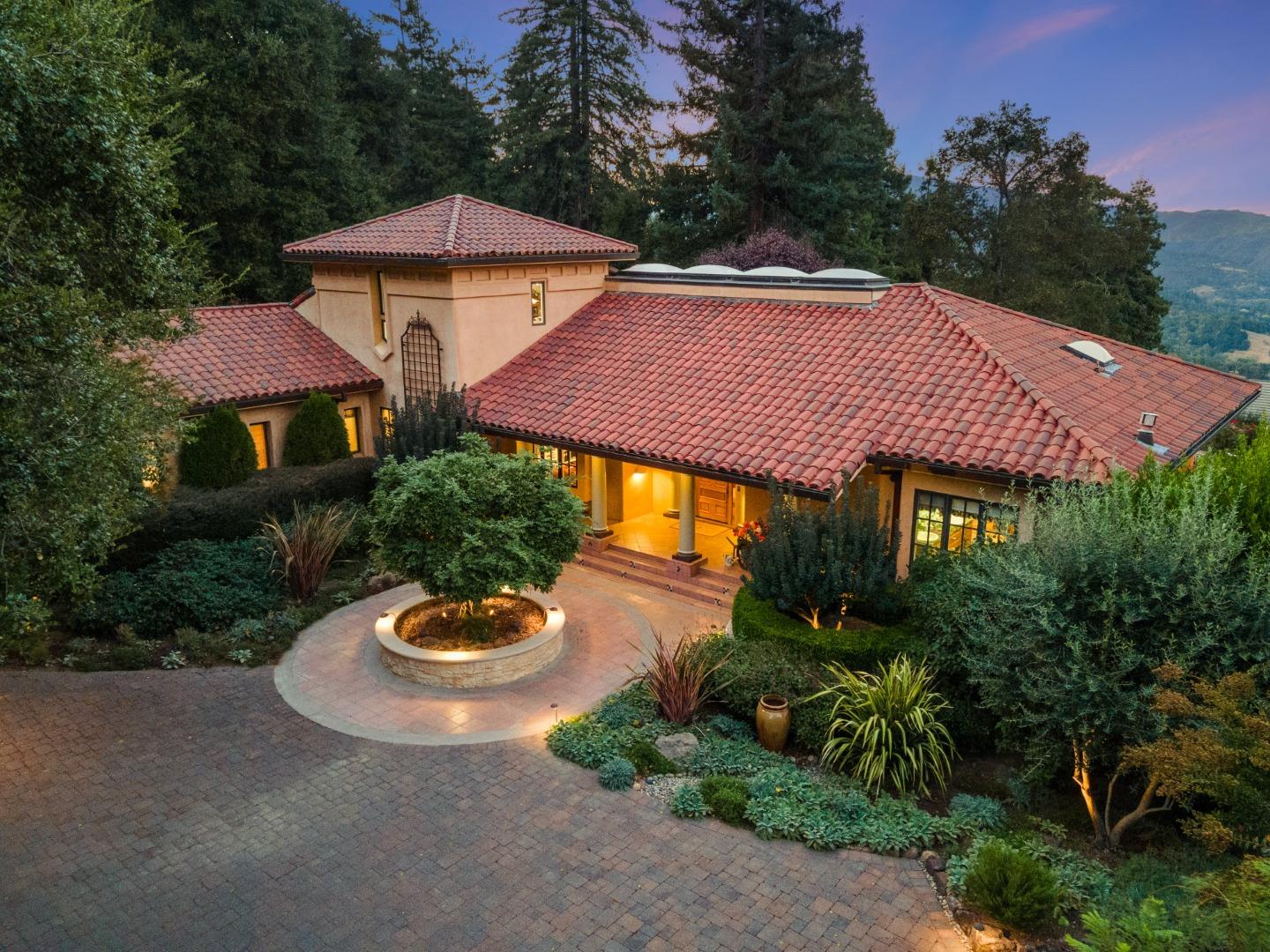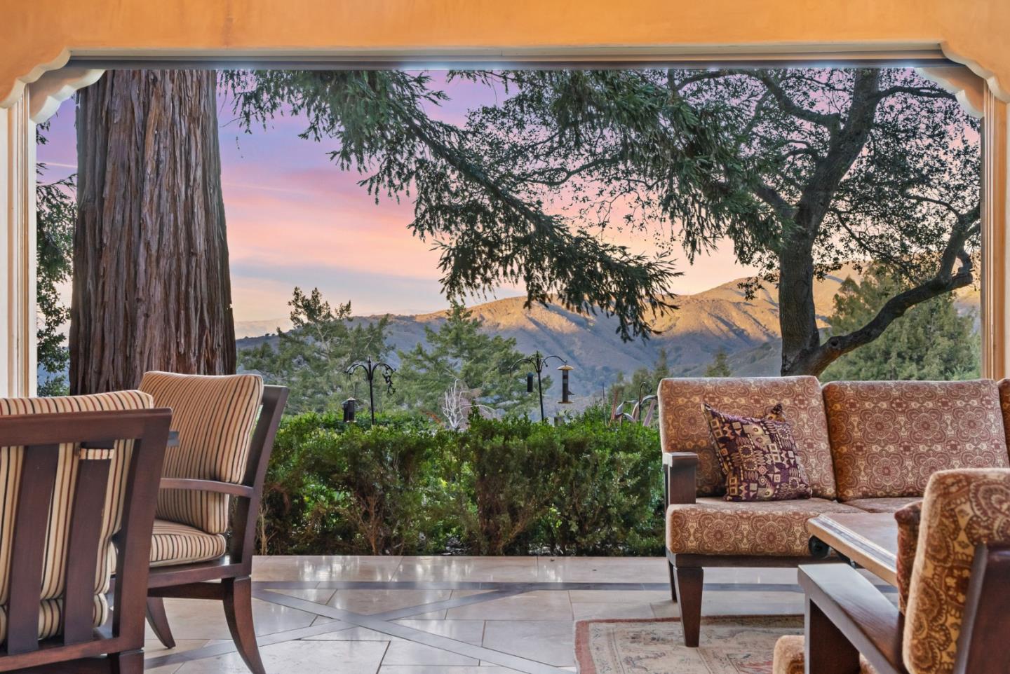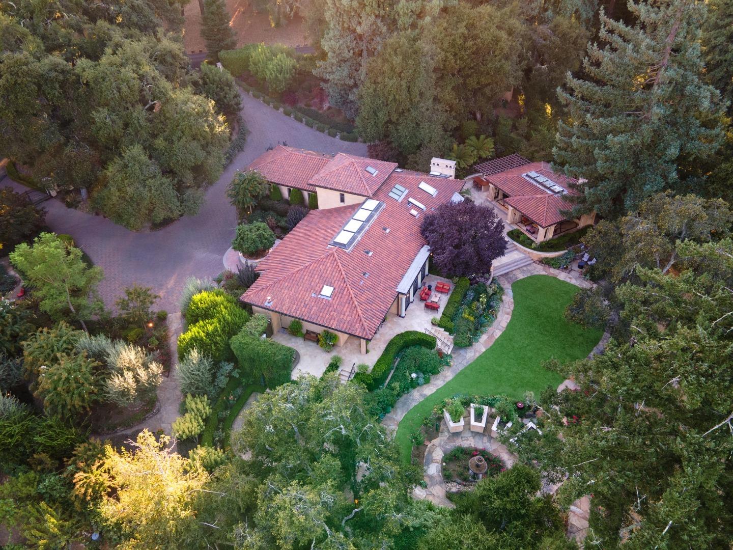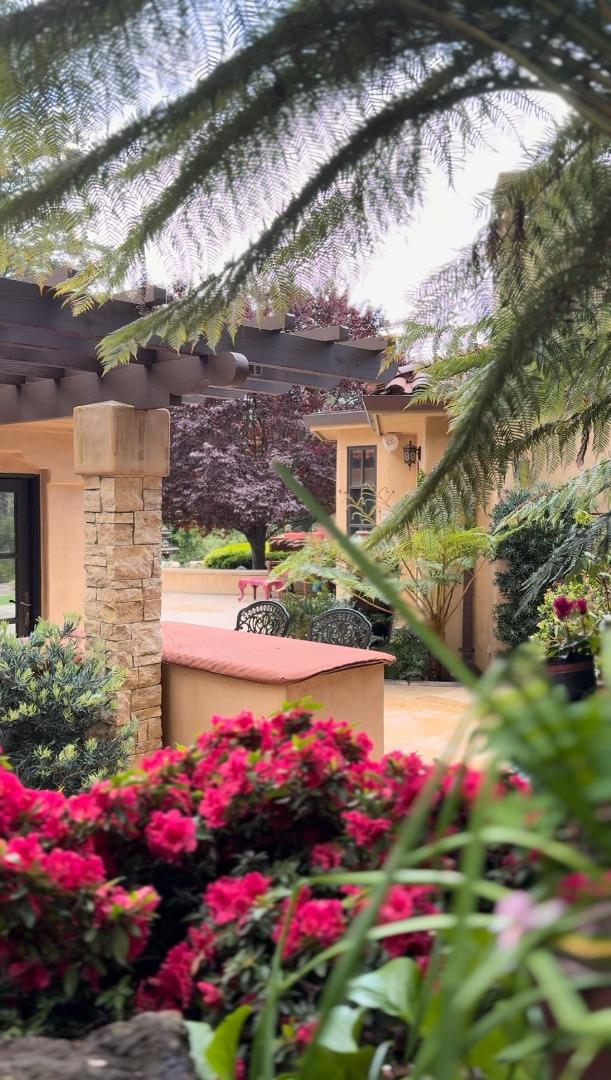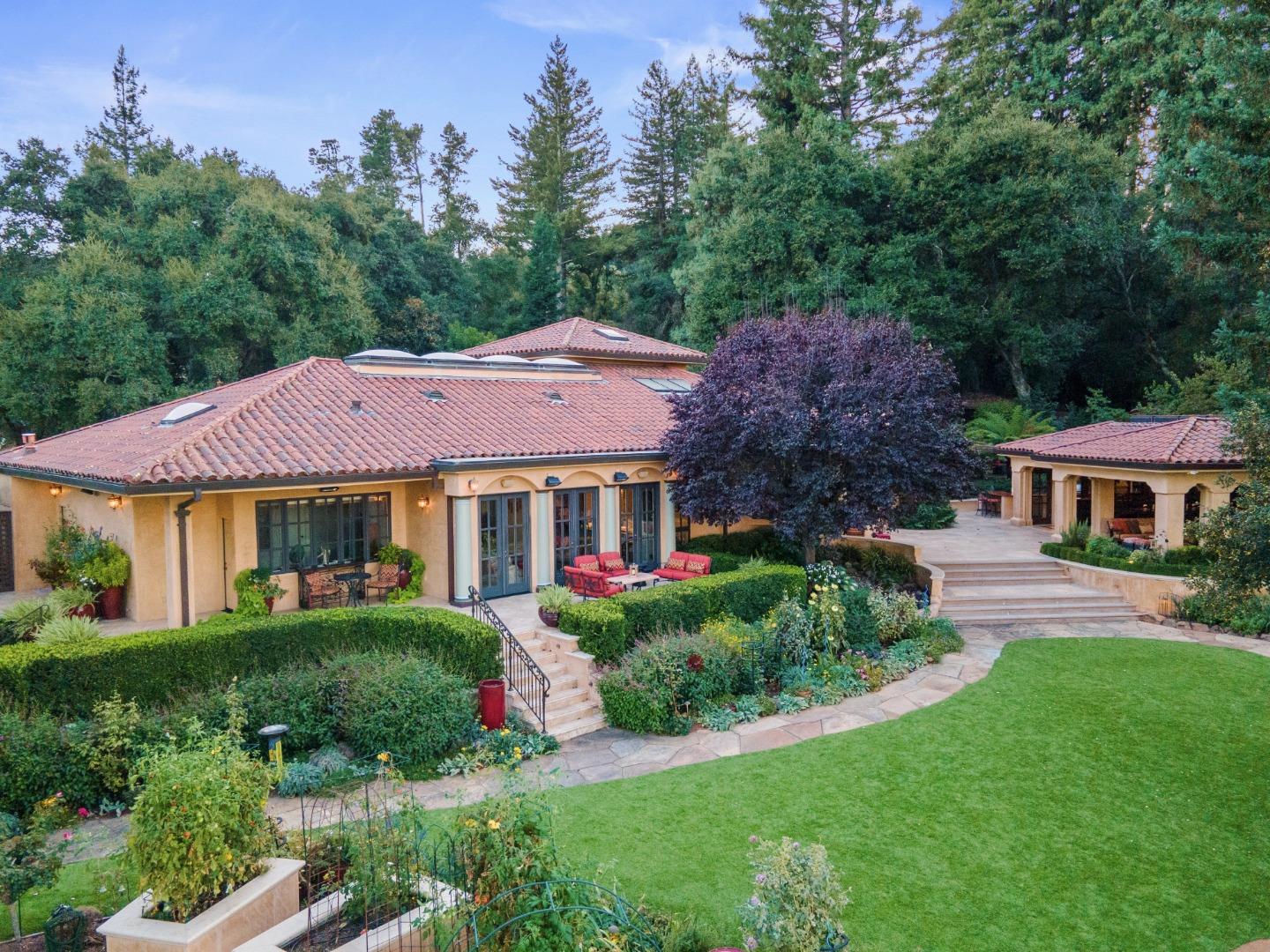 PRESTIGIOUS NEIGHBORHOOD | FOUR MILES FROM DOWNTOWN LOS GATOS | LUXURIOUS 1197+-sf LANAI | LUSH GROUNDS AND STUNNING VIEWS | AN EXCEPTIONAL ENTERTAINMENT VENUE It's architect, Henry Herold, a head designer for Frank Lloyd Wright, designed it's 'prairie-design,' with strong lines and many windows it's perfect to enjoy the views beyond. Dual-gates open to reveal meticulously landscaped gardens that flourish across 2.15+- ac. Stone pathways take one to delight in any of several garden enjoyment nooks. See city lights and captivating natural vistas, as seen in the images. An indoor-outdoor sound system plays your favorite tunes and the jacuzzi is steps from the Primary Suite! A spacious kitchen, with high-end appliances and large pantry, is perfect for culinary enthusiasts. The family room with cozy fireplace opens to the kitchen, providing a warm atmosphere with views from every window. An elegant living room adjoins the dining area, with triple French doors creating a stylish indoor-outdoor setting. Natural light is abundant! It's dual water sources, city water for the home and well water for irrigation, plus electronic dual-gated access, marry elegance with practicality. Ample storage. Buyer to verify square footages: Main Home 3742sf, Lanai/ Outdoor Kitchen 1197sf, Gar. 614sf.