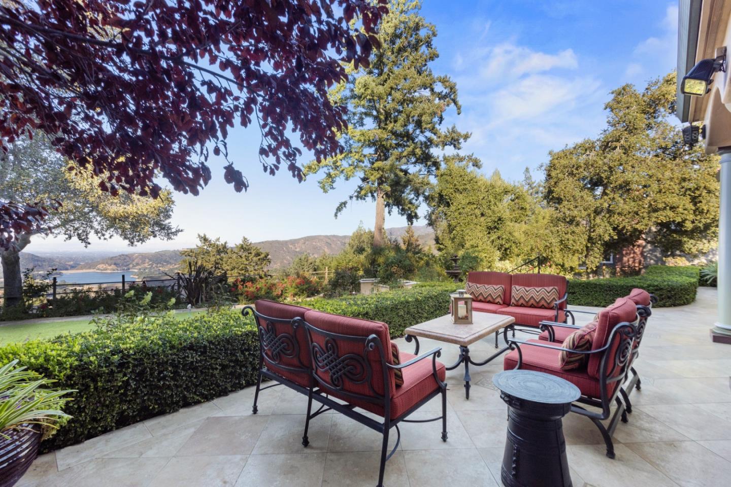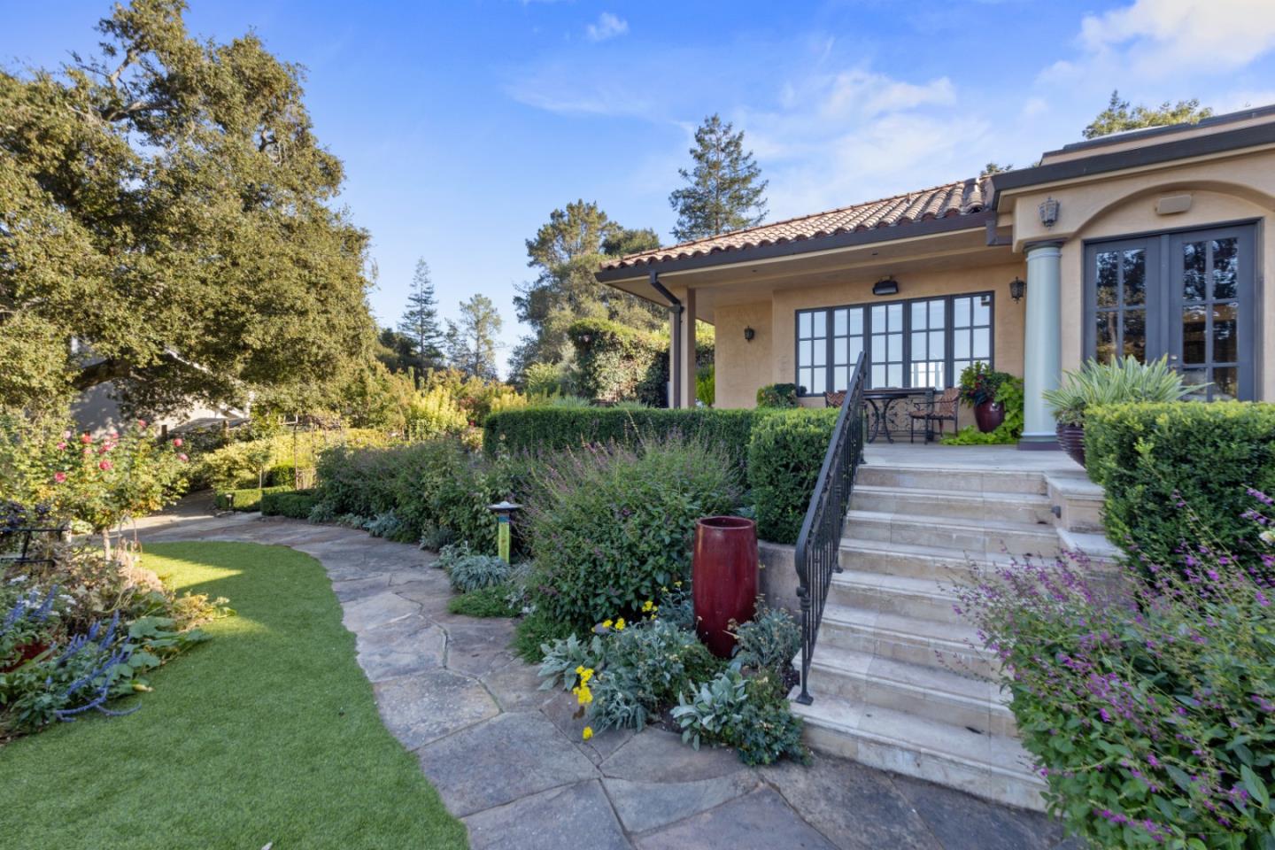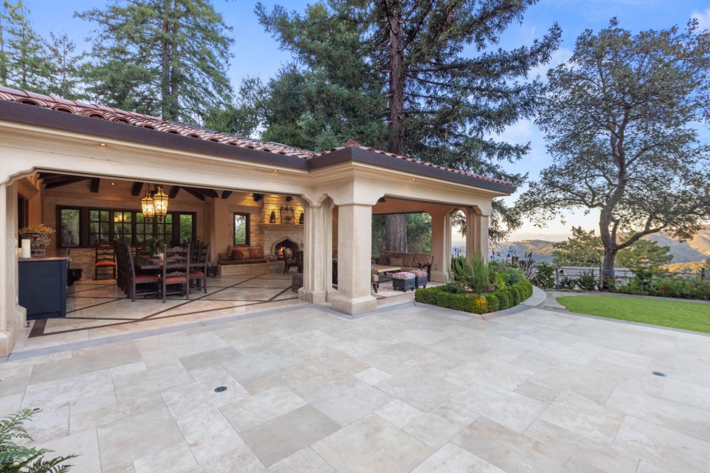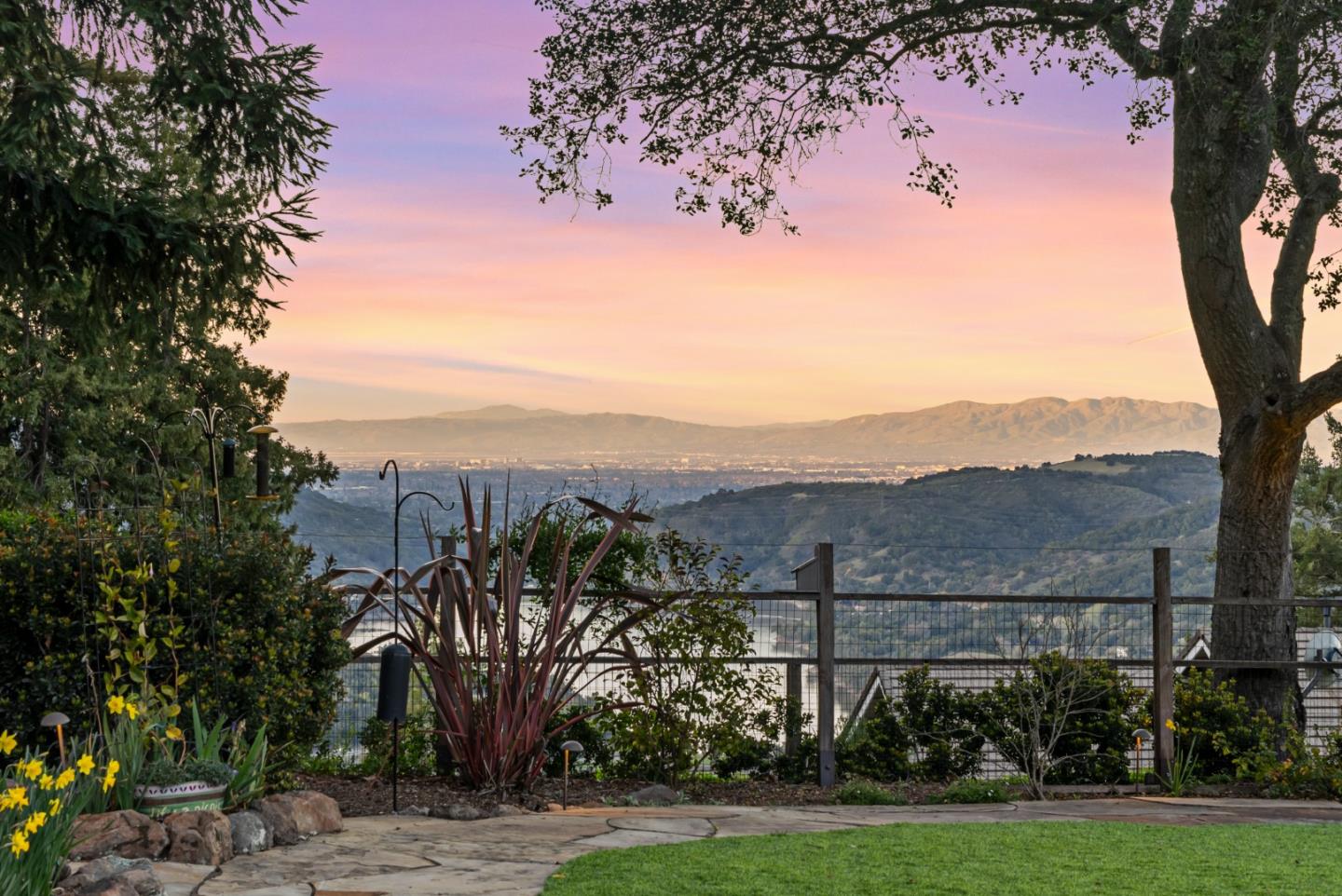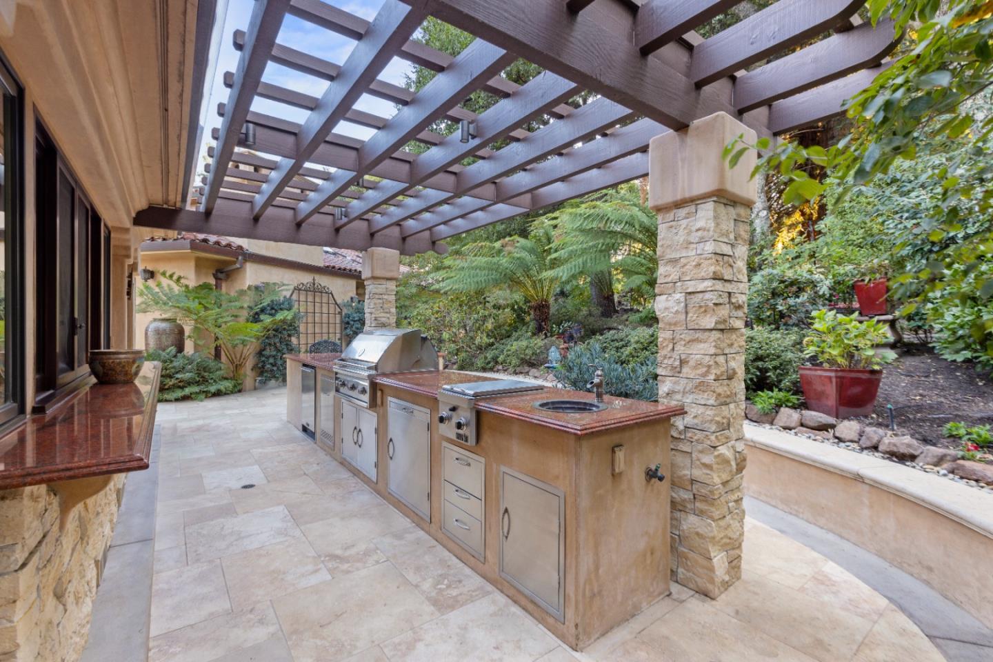 PRESTIGIOUS NEIGHBORHOOD | FOUR MILES FROM DOWNTOWN LOS GATOS | LUXURIOUS 1197+-sf LANAI | LUSH GROUNDS AND STUNNING VIEWS | AN EXCEPTIONAL ENTERTAINMENT VENUE It's architect, Henry Herold, a head designer for Frank Lloyd Wright, designed it's 'prairie-design,' with strong lines and many windows it's perfect to enjoy the views beyond. Dual-gates open to reveal meticulously landscaped gardens that flourish across 2.15+- ac. Stone pathways take one to delight in any of several garden enjoyment nooks. See city lights and captivating natural vistas, as seen in the images. An indoor-outdoor sound system plays your favorite tunes and the jacuzzi is steps from the Primary Suite! A spacious kitchen, with high-end appliances and large pantry, is perfect for culinary enthusiasts. The family room with cozy fireplace opens to the kitchen, providing a warm atmosphere with views from every window. An elegant living room adjoins the dining area, with triple French doors creating a stylish indoor-outdoor setting. Natural light is abundant! It's dual water sources, city water for the home and well water for irrigation, plus electronic dual-gated access, marry elegance with practicality. Ample storage. Buyer to verify square footages: Main Home 3742sf, Lanai/ Outdoor Kitchen 1197sf, Gar. 614sf.