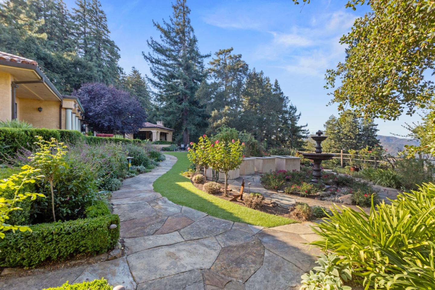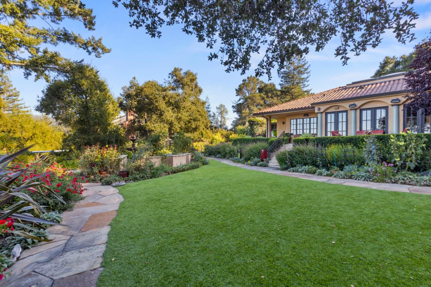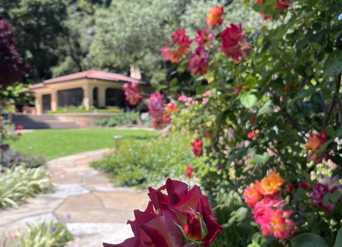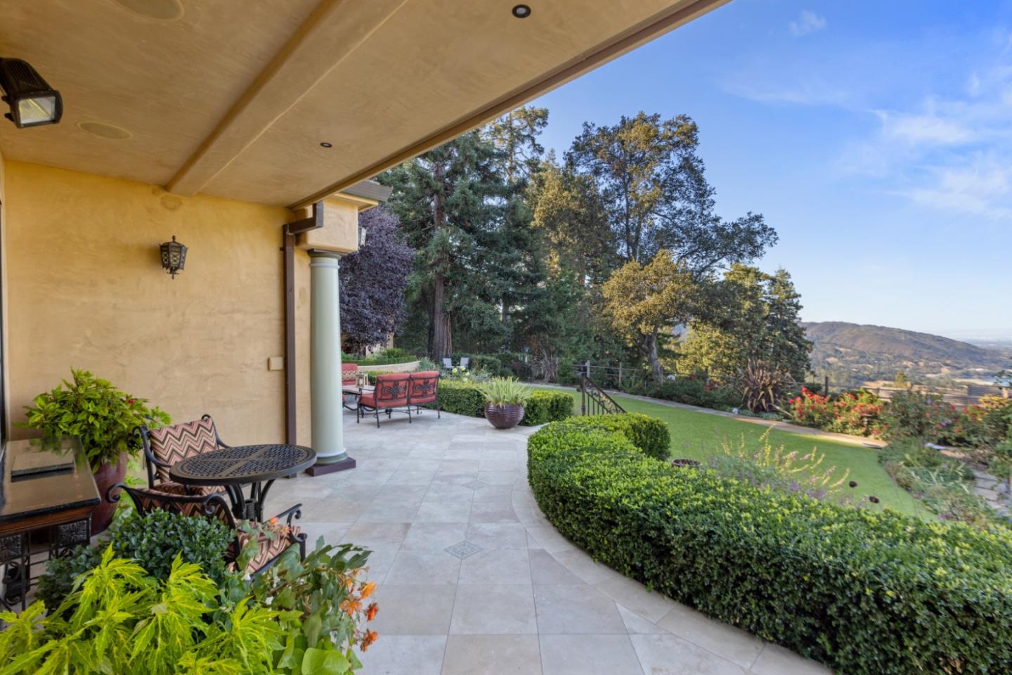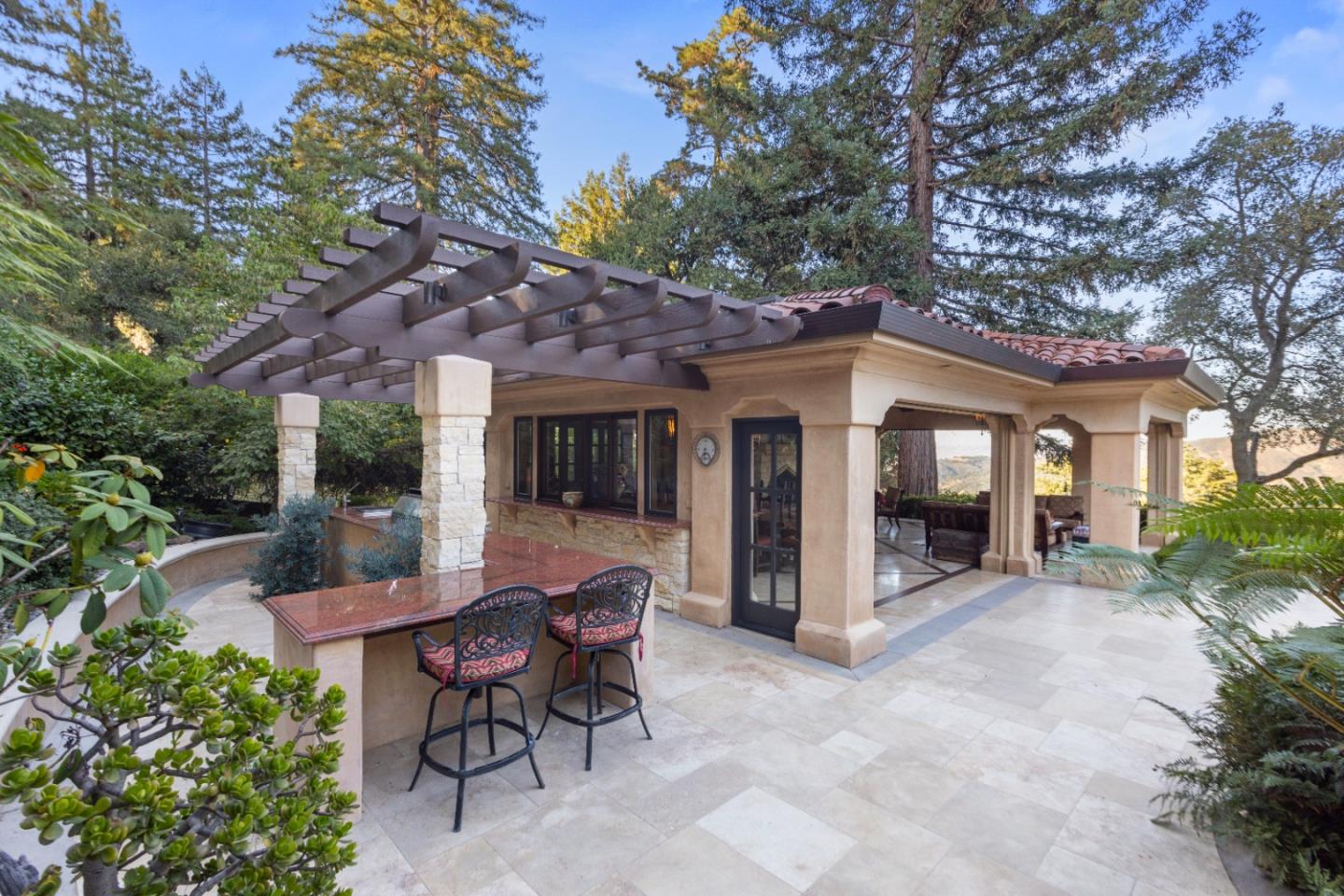 PRESTIGIOUS NEIGHBORHOOD | FOUR MILES FROM DOWNTOWN LOS GATOS | LUXURIOUS 1197+-sf LANAI | LUSH GROUNDS AND STUNNING VIEWS | AN EXCEPTIONAL ENTERTAINMENT VENUE It's architect, Henry Herold, a head designer for Frank Lloyd Wright, designed it's 'prairie-design,' with strong lines and many windows it's perfect to enjoy the views beyond. Dual-gates open to reveal meticulously landscaped gardens that flourish across 2.15+- ac. Stone pathways take one to delight in any of several garden enjoyment nooks. See city lights and captivating natural vistas, as seen in the images. An indoor-outdoor sound system plays your favorite tunes and the jacuzzi is steps from the Primary Suite! A spacious kitchen, with high-end appliances and large pantry, is perfect for culinary enthusiasts. The family room with cozy fireplace opens to the kitchen, providing a warm atmosphere with views from every window. An elegant living room adjoins the dining area, with triple French doors creating a stylish indoor-outdoor setting. Natural light is abundant! It's dual water sources, city water for the home and well water for irrigation, plus electronic dual-gated access, marry elegance with practicality. Ample storage. Buyer to verify square footages: Main Home 3742sf, Lanai/ Outdoor Kitchen 1197sf, Gar. 614sf.