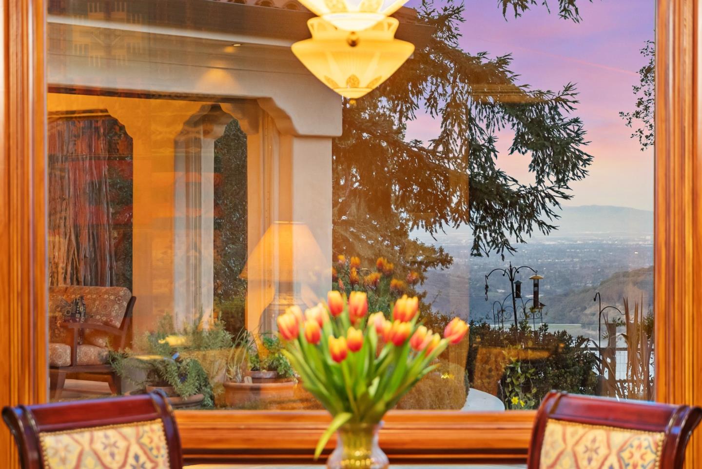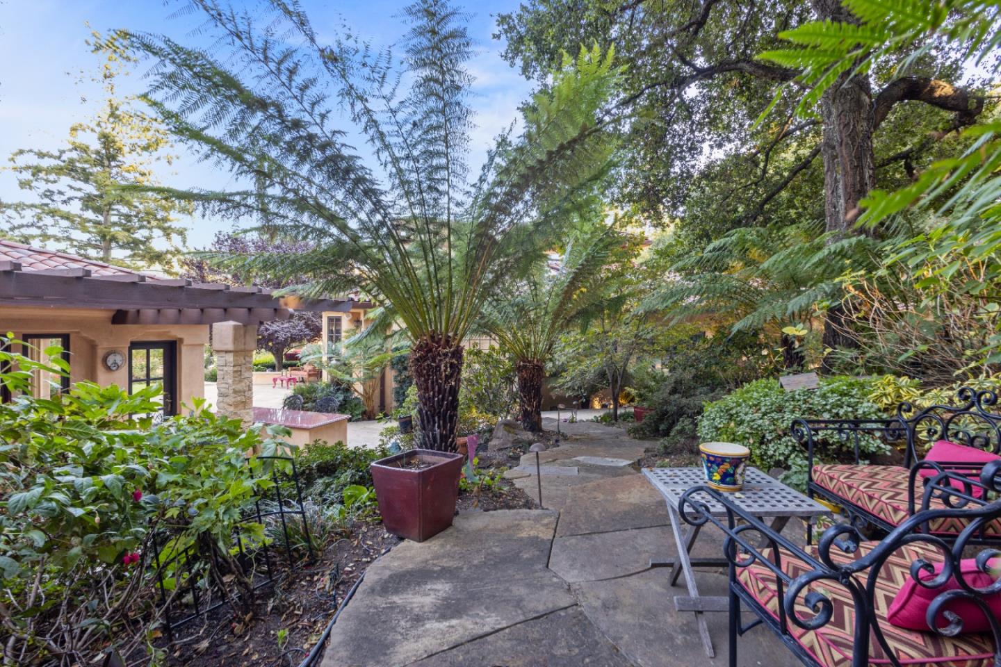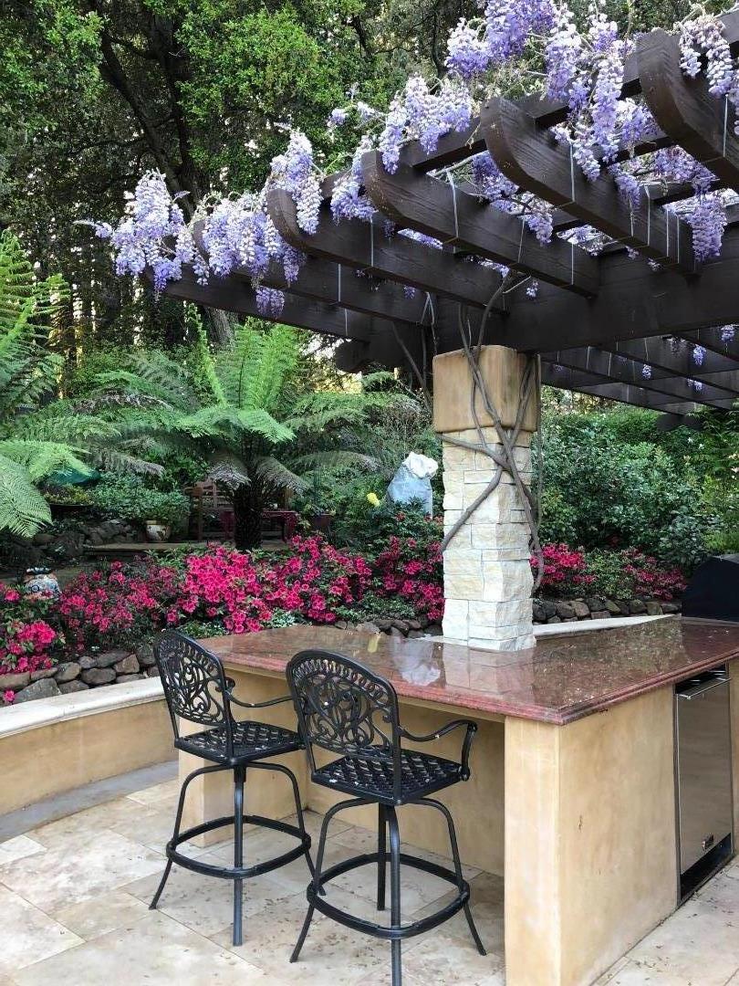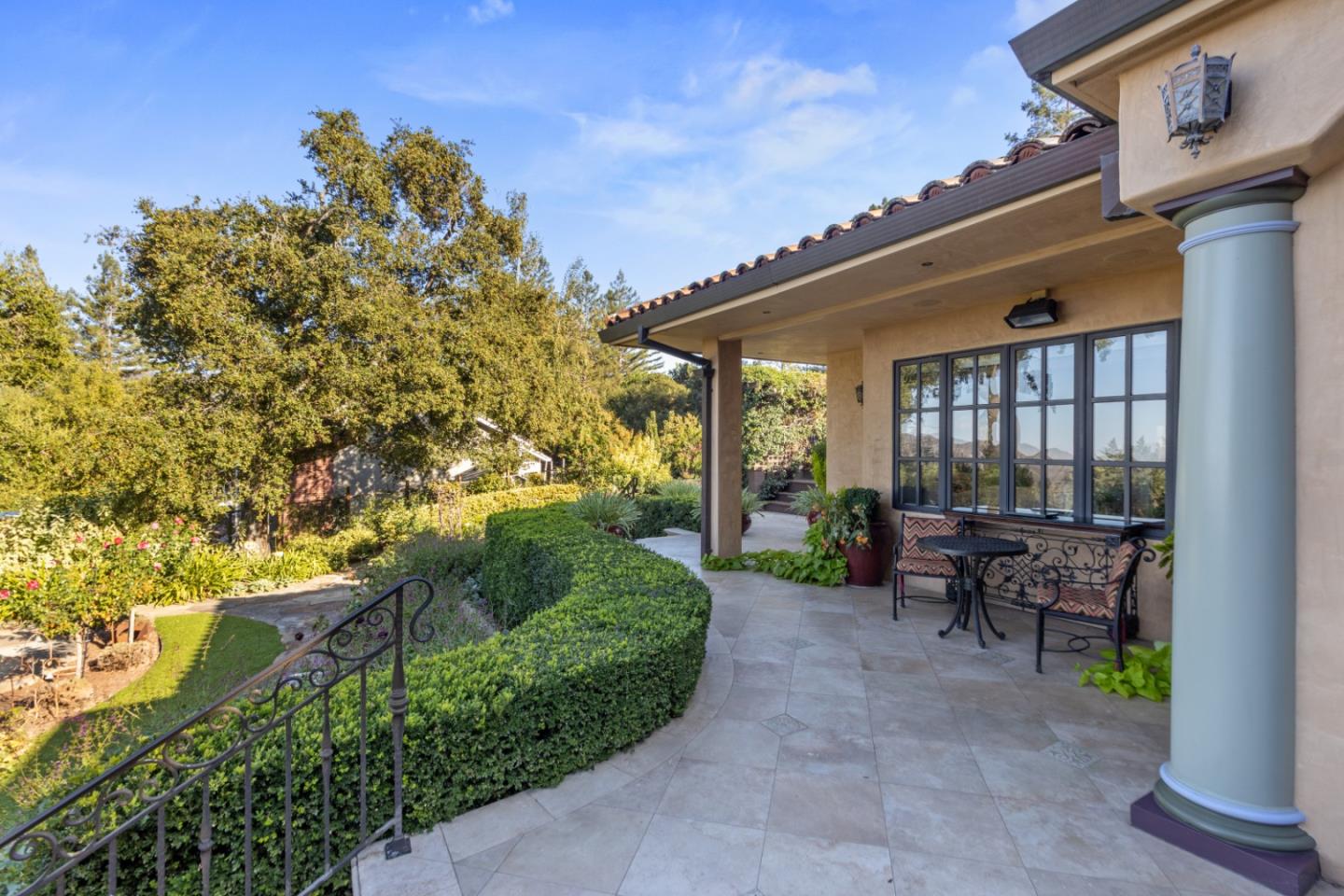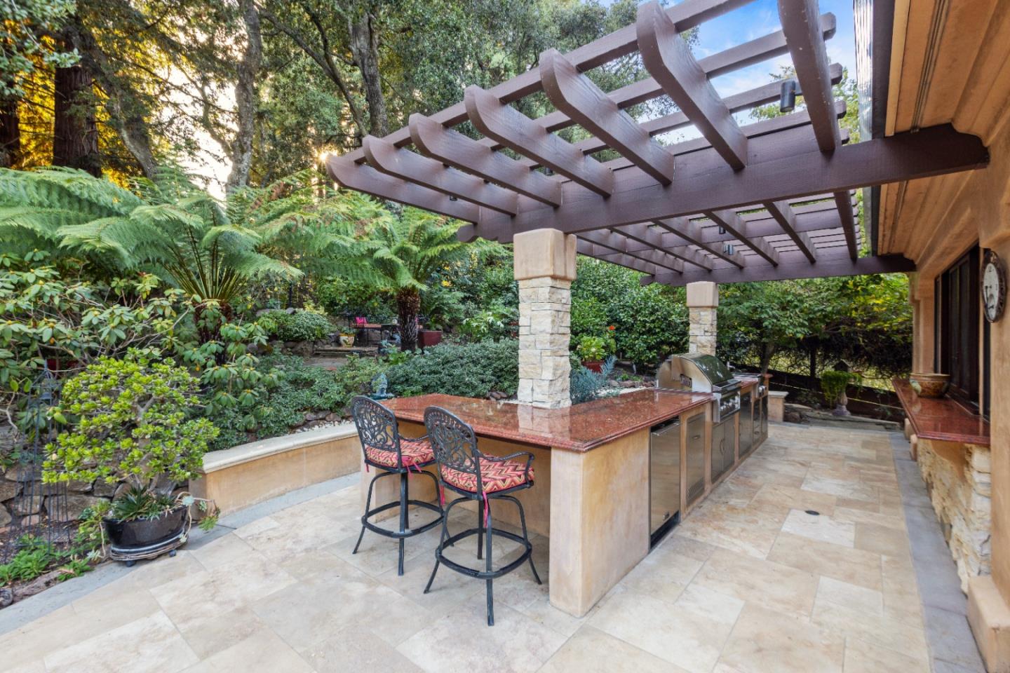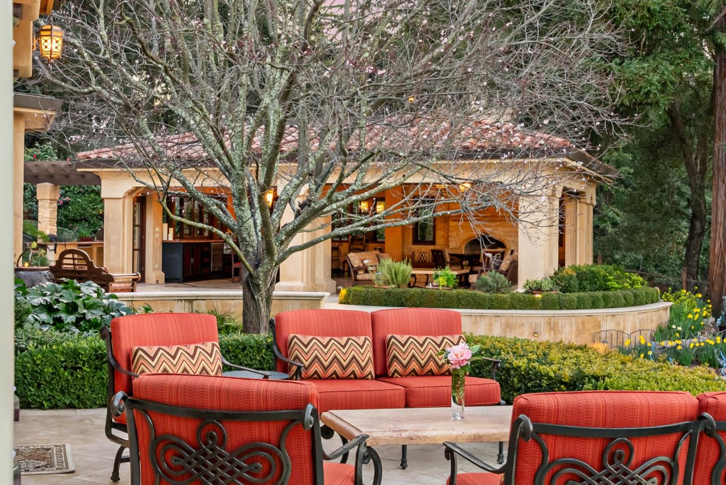 PRESTIGIOUS NEIGHBORHOOD | FOUR MILES FROM DOWNTOWN LOS GATOS | LUXURIOUS 1197+-sf LANAI | LUSH GROUNDS AND STUNNING VIEWS | AN EXCEPTIONAL ENTERTAINMENT VENUE It's architect, Henry Herold, a head designer for Frank Lloyd Wright, designed it's 'prairie-design,' with strong lines and many windows it's perfect to enjoy the views beyond. Dual-gates open to reveal meticulously landscaped gardens that flourish across 2.15+- ac. Stone pathways take one to delight in any of several garden enjoyment nooks. See city lights and captivating natural vistas, as seen in the images. An indoor-outdoor sound system plays your favorite tunes and the jacuzzi is steps from the Primary Suite! A spacious kitchen, with high-end appliances and large pantry, is perfect for culinary enthusiasts. The family room with cozy fireplace opens to the kitchen, providing a warm atmosphere with views from every window. An elegant living room adjoins the dining area, with triple French doors creating a stylish indoor-outdoor setting. Natural light is abundant! It's dual water sources, city water for the home and well water for irrigation, plus electronic dual-gated access, marry elegance with practicality. Ample storage. Buyer to verify square footages: Main Home 3742sf, Lanai/ Outdoor Kitchen 1197sf, Gar. 614sf.