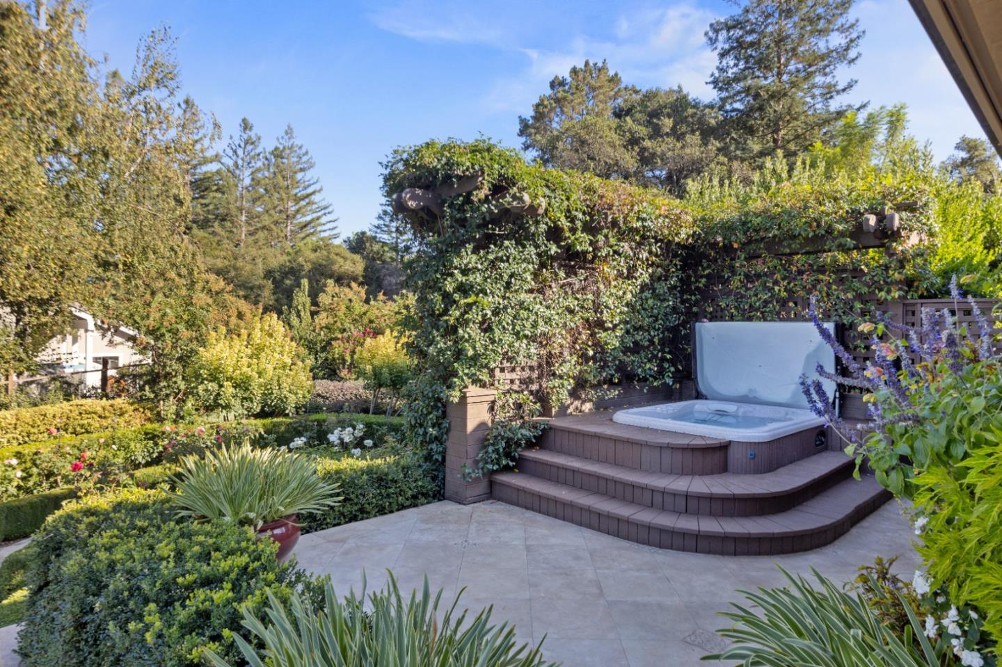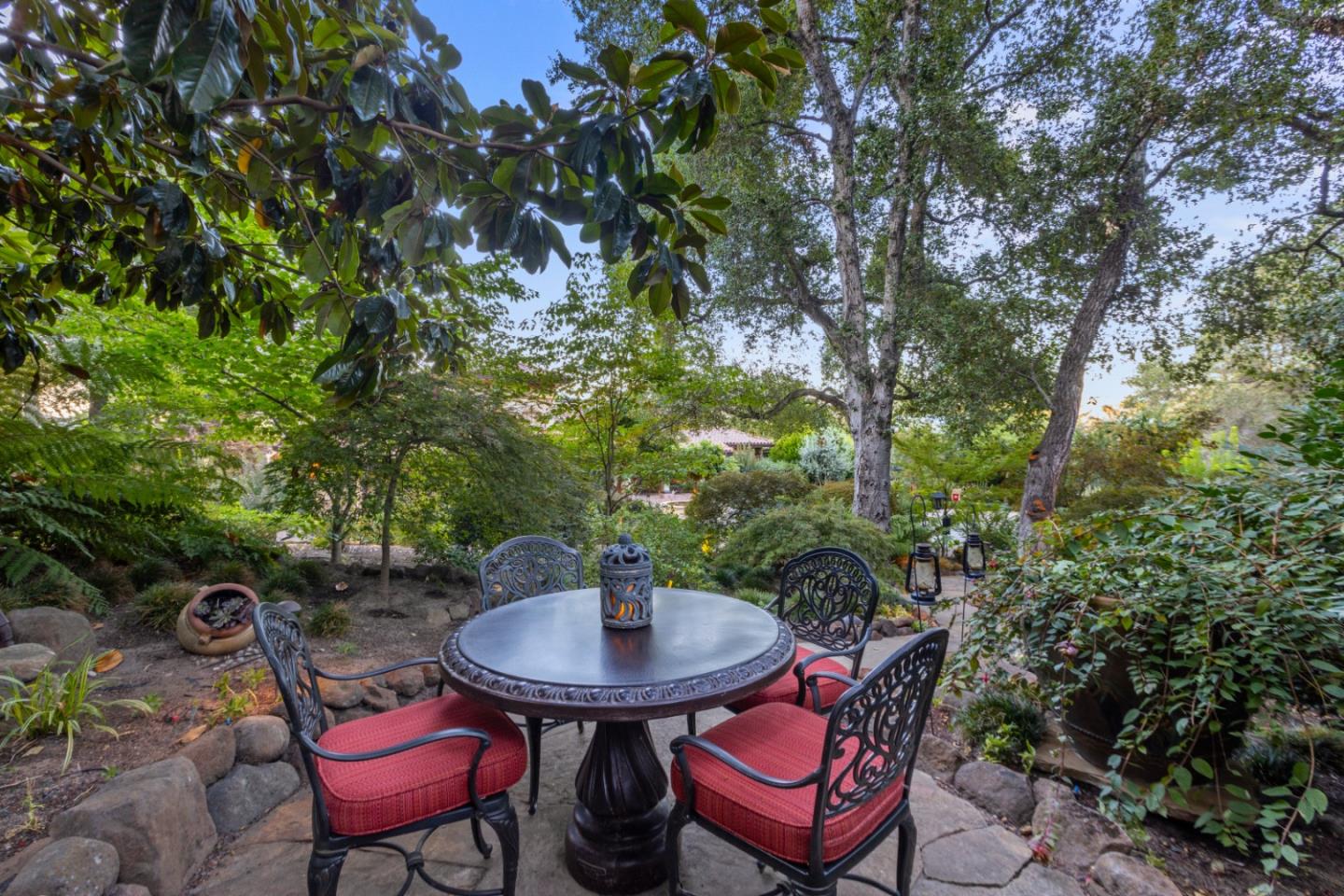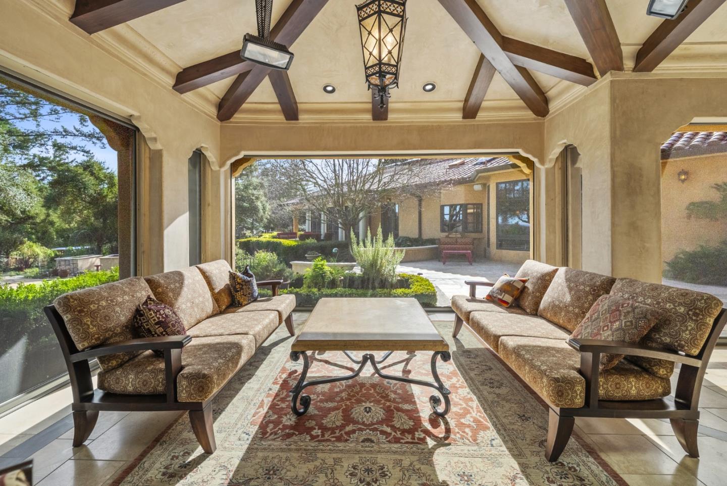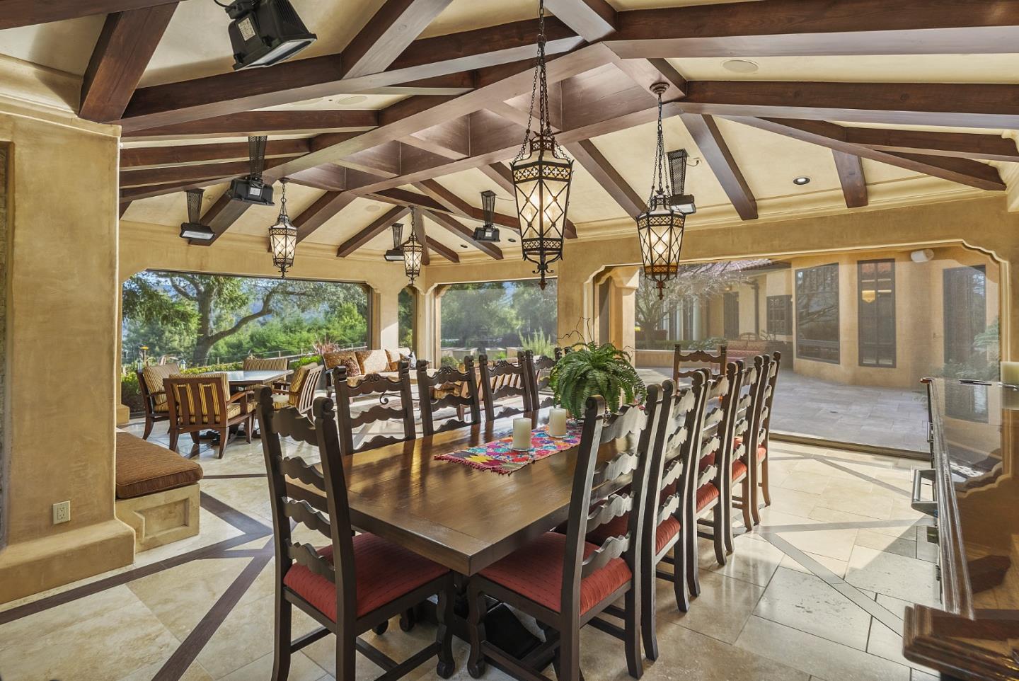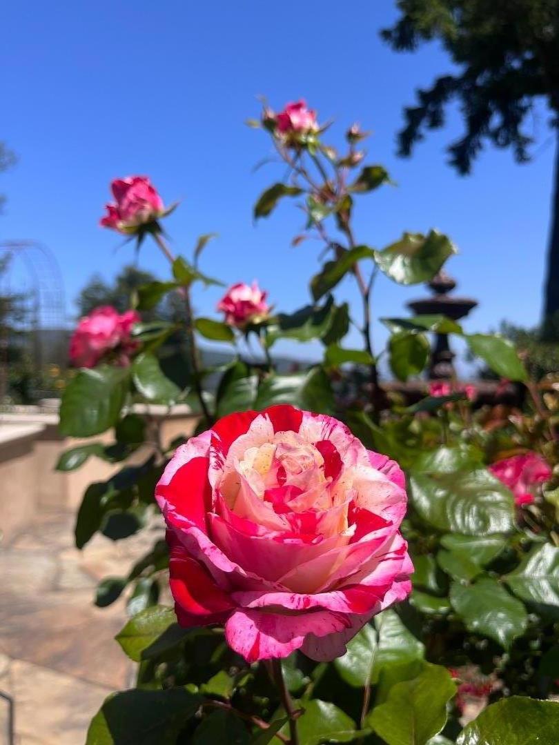 PRESTIGIOUS NEIGHBORHOOD | FOUR MILES FROM DOWNTOWN LOS GATOS | LUXURIOUS 1197+-sf LANAI | LUSH GROUNDS AND STUNNING VIEWS | AN EXCEPTIONAL ENTERTAINMENT VENUE It's architect, Henry Herold, a head designer for Frank Lloyd Wright, designed it's 'prairie-design,' with strong lines and many windows it's perfect to enjoy the views beyond. Dual-gates open to reveal meticulously landscaped gardens that flourish across 2.15+- ac. Stone pathways take one to delight in any of several garden enjoyment nooks. See city lights and captivating natural vistas, as seen in the images. An indoor-outdoor sound system plays your favorite tunes and the jacuzzi is steps from the Primary Suite! A spacious kitchen, with high-end appliances and large pantry, is perfect for culinary enthusiasts. The family room with cozy fireplace opens to the kitchen, providing a warm atmosphere with views from every window. An elegant living room adjoins the dining area, with triple French doors creating a stylish indoor-outdoor setting. Natural light is abundant! It's dual water sources, city water for the home and well water for irrigation, plus electronic dual-gated access, marry elegance with practicality. Ample storage. Buyer to verify square footages: Main Home 3742sf, Lanai/ Outdoor Kitchen 1197sf, Gar. 614sf.