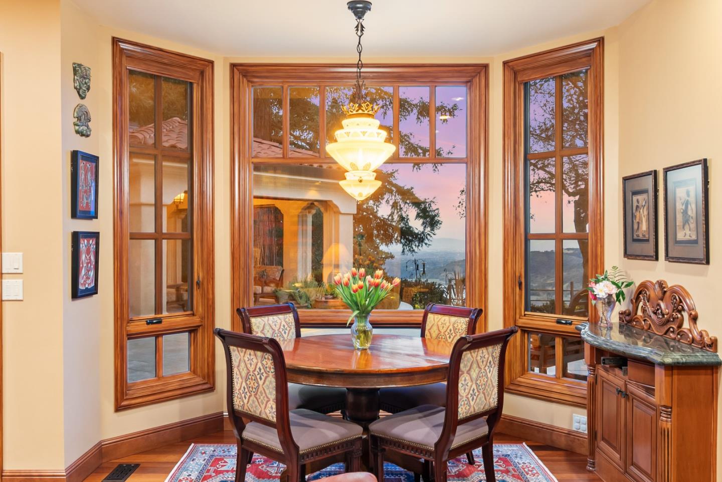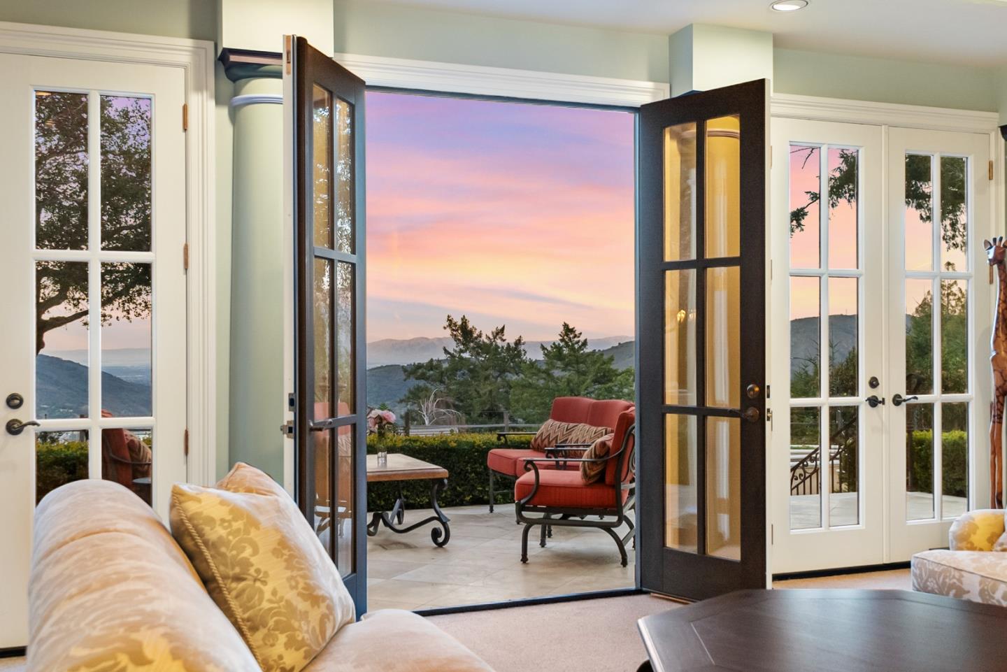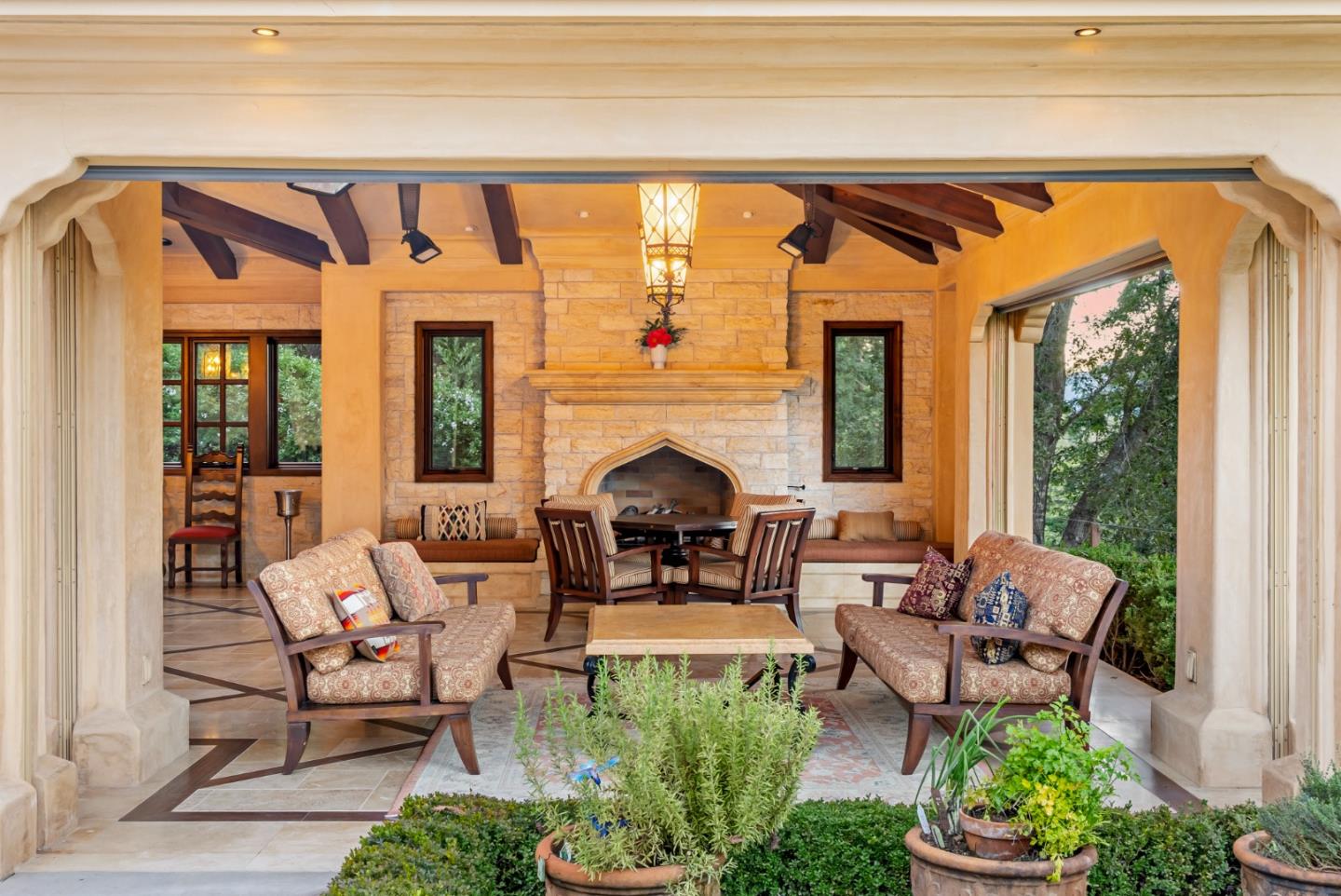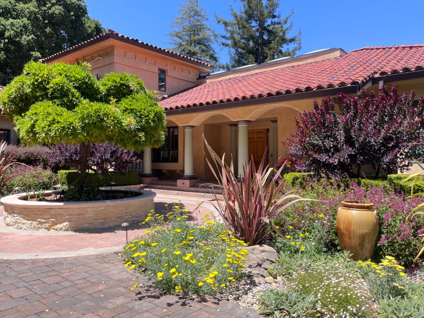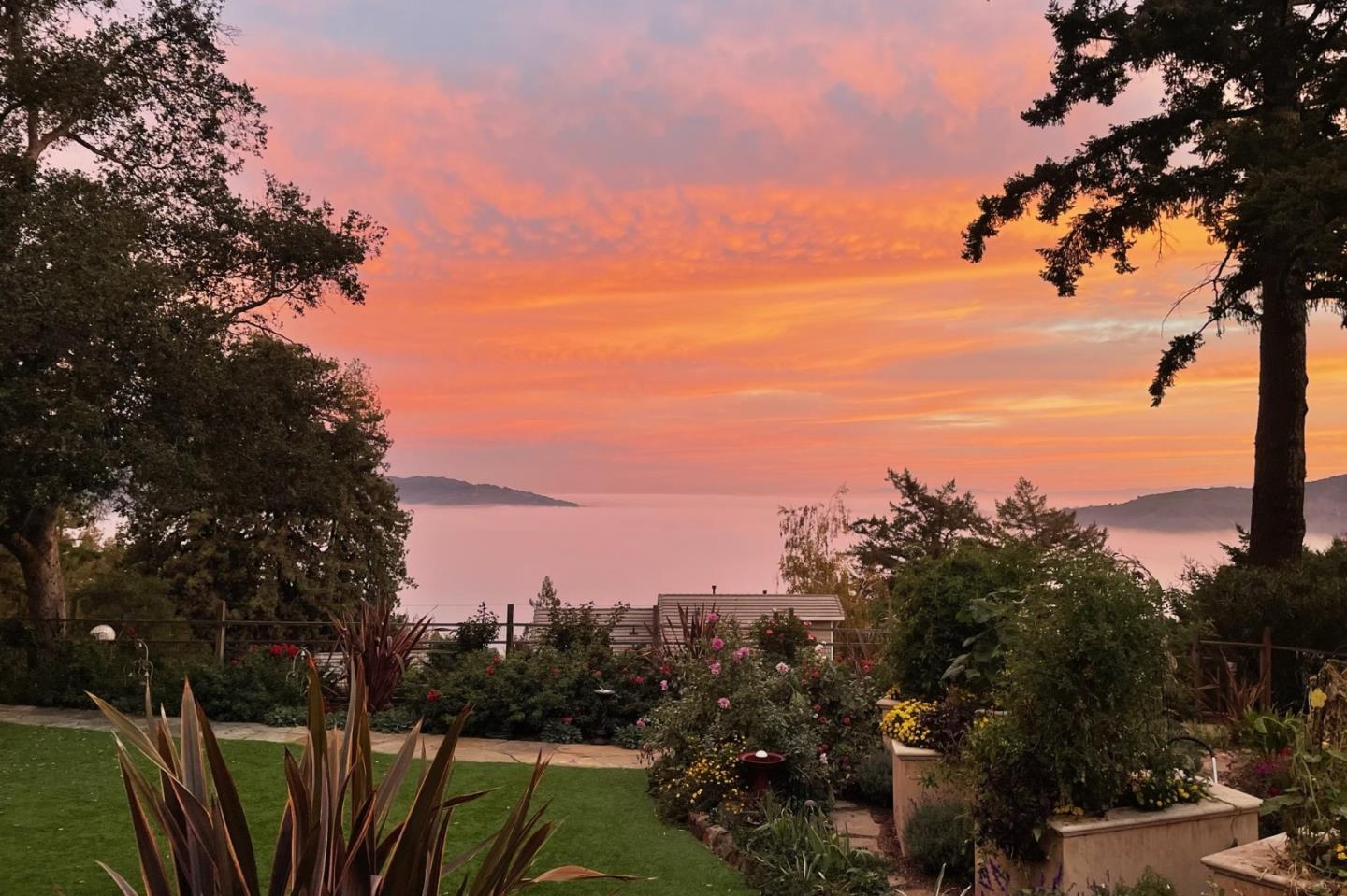 PRESTIGIOUS NEIGHBORHOOD | FOUR MILES FROM DOWNTOWN LOS GATOS | LUXURIOUS 1197+-sf LANAI | LUSH GROUNDS AND STUNNING VIEWS | AN EXCEPTIONAL ENTERTAINMENT VENUE It's architect, Henry Herold, a head designer for Frank Lloyd Wright, designed it's 'prairie-design,' with strong lines and many windows it's perfect to enjoy the views beyond. Dual-gates open to reveal meticulously landscaped gardens that flourish across 2.15+- ac. Stone pathways take one to delight in any of several garden enjoyment nooks. See city lights and captivating natural vistas, as seen in the images. An indoor-outdoor sound system plays your favorite tunes and the jacuzzi is steps from the Primary Suite! A spacious kitchen, with high-end appliances and large pantry, is perfect for culinary enthusiasts. The family room with cozy fireplace opens to the kitchen, providing a warm atmosphere with views from every window. An elegant living room adjoins the dining area, with triple French doors creating a stylish indoor-outdoor setting. Natural light is abundant! It's dual water sources, city water for the home and well water for irrigation, plus electronic dual-gated access, marry elegance with practicality. Ample storage. Buyer to verify square footages: Main Home 3742sf, Lanai/ Outdoor Kitchen 1197sf, Gar. 614sf.