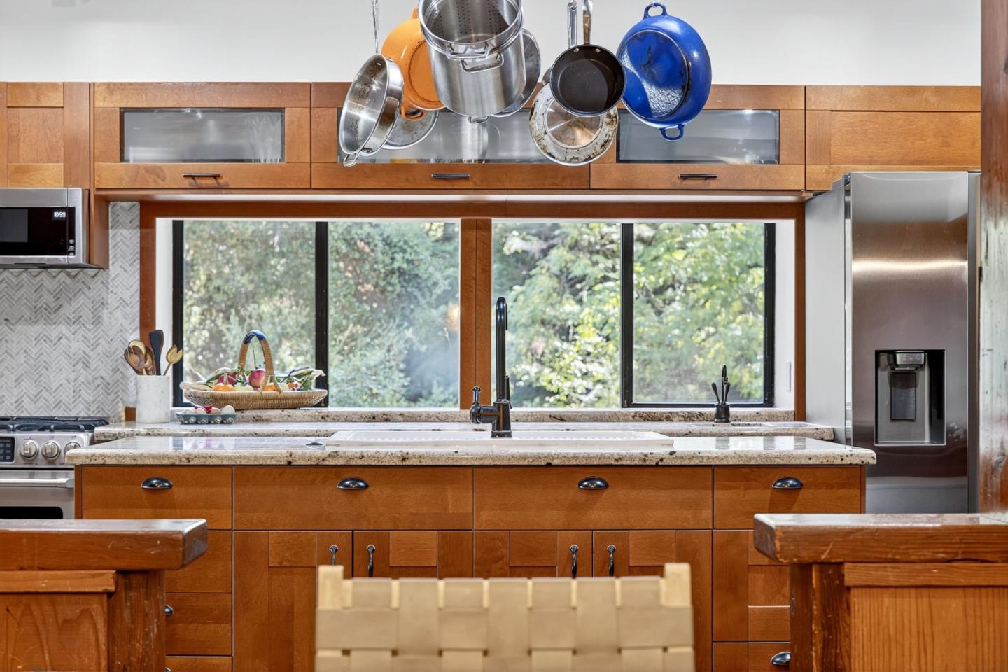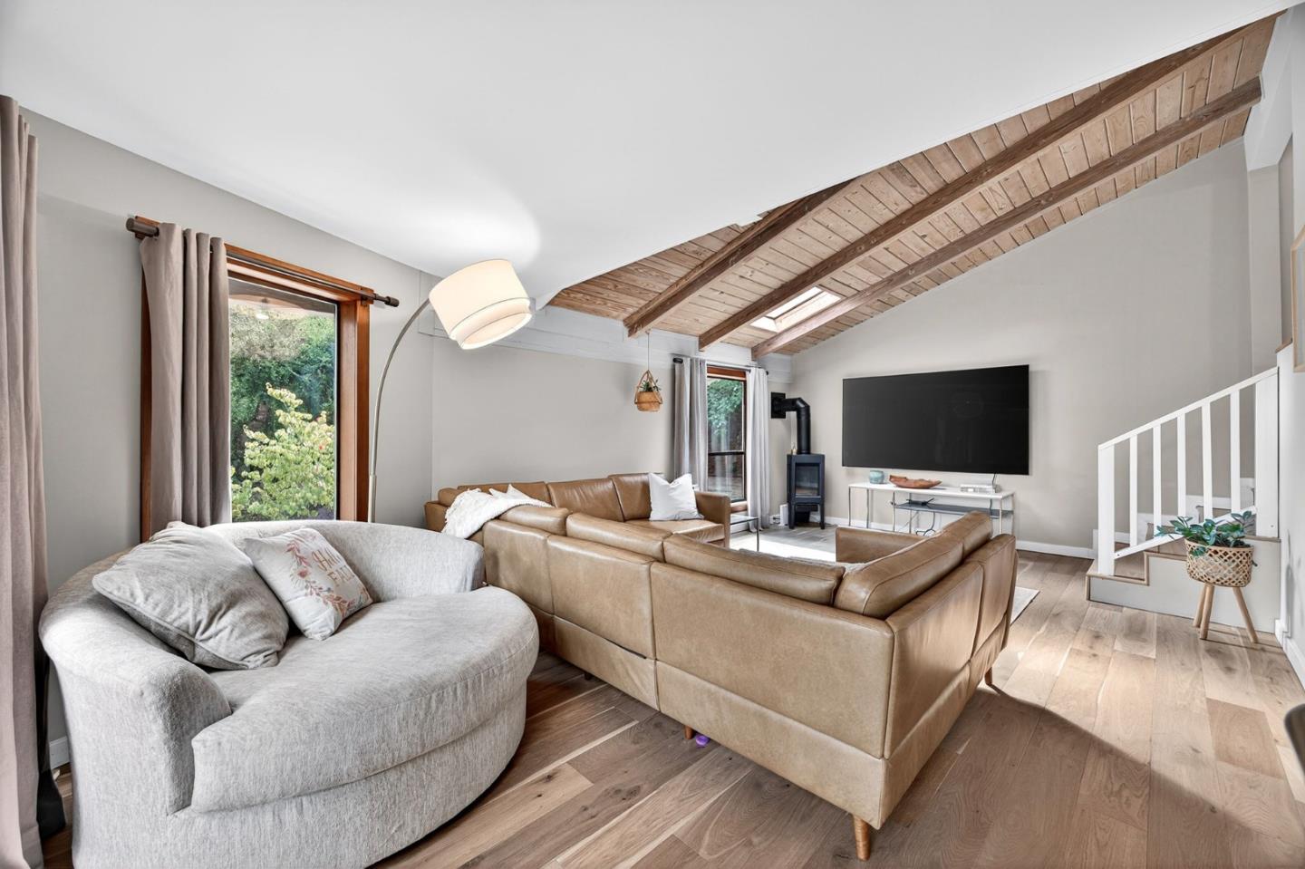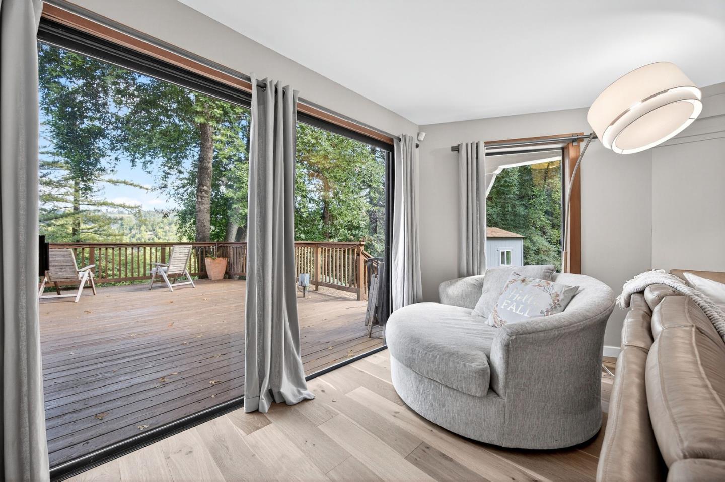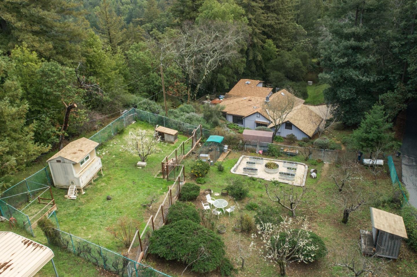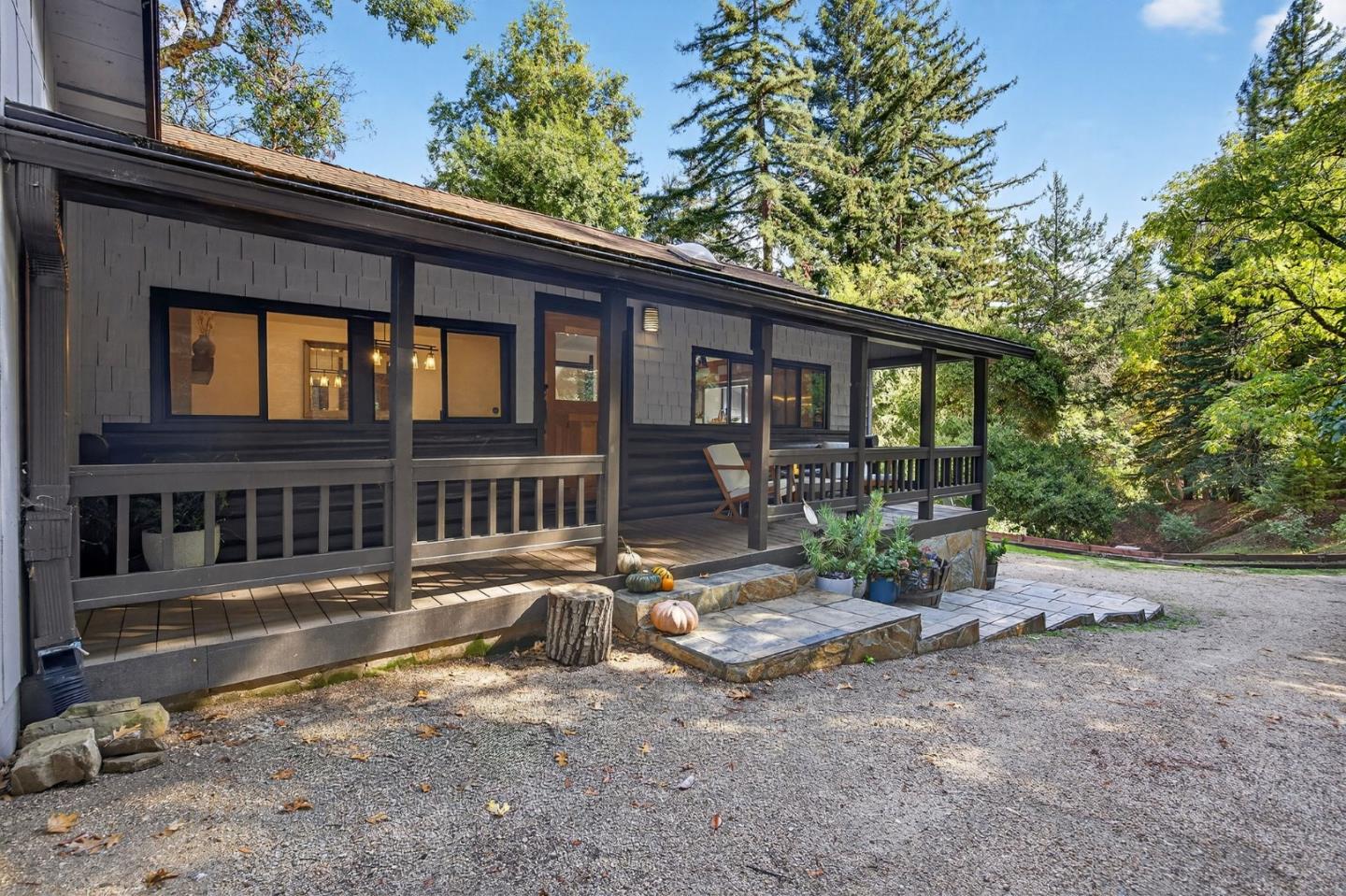 So much newness! Expanded from original cabin around 2008. Since 2021: New oak floors, new whole house generator, new steel ducting, much more. Charming 4 bd. 3.5 ba. home is modernized and part of Los Gatos history. Primary plus one more en-suite bdrm! Natural light fills the living areas including the kitchen where a large center island, gas stove, and lots of counter space make cooking a joy! The primary suite opens to the back deck with beautiful views and features a walk in closet and oversized tub for the ultimate relaxation. One additional en-suite room, plus 2 more bedrooms! An inviting living room with cozy Jotul gas stove opens to the back deck where the jacuzzi awaits. What is a mtn. home without a wood-beam ceiling wine cellar? Keep your collection cool in this fun space! Steps away, a separate stand alone office space, updated in 2024 and now complete with AC/Heat, recessed lighting, and more, perfect for work-from-home, she-or-he-shed or other! Frontier fiber ready, Starlink available. 3.5 ac. lot, some usable land! Fruit trees produce in abundance, chicken coop is ready for your chickens, sun and shade, this is a truly beautiful setting! It's quick and easy to get onto Bear Creek Road and then you are just 8.7 miles into downtown Los Gatos. Los Gatos schools!